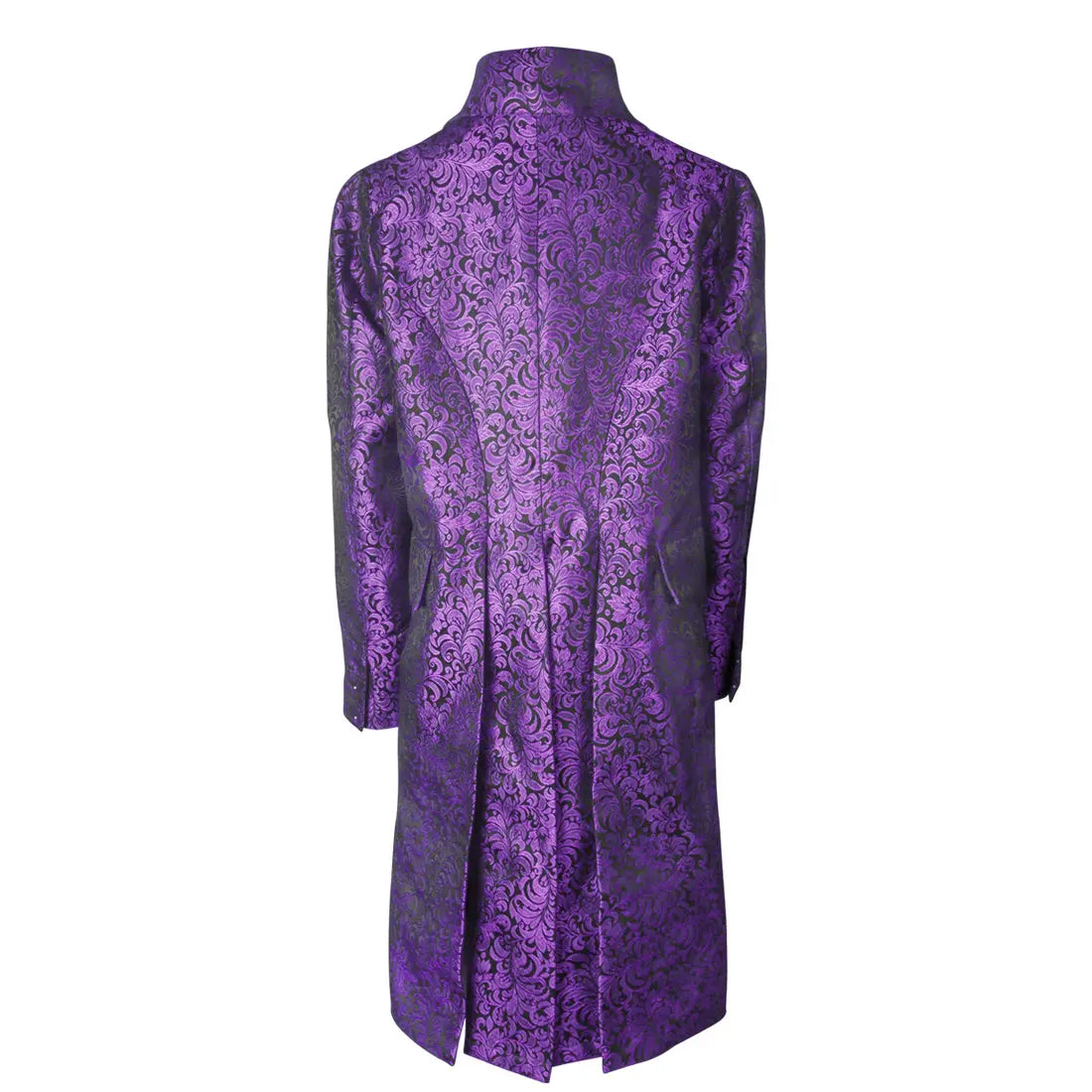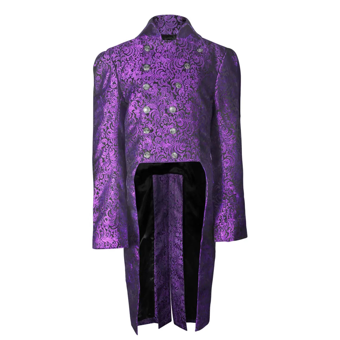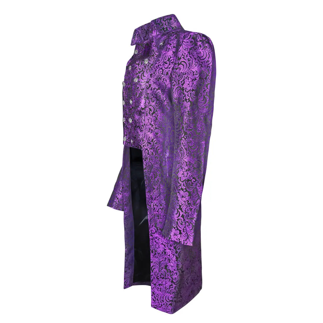 Men's Long Coat Purple long crew neck coat for men. Looks gothic with a front length above the waist. A high and stiff collar makes you straight and confident. To justify the outfit, the purple color is perfect and makes you feel like a gothic character.