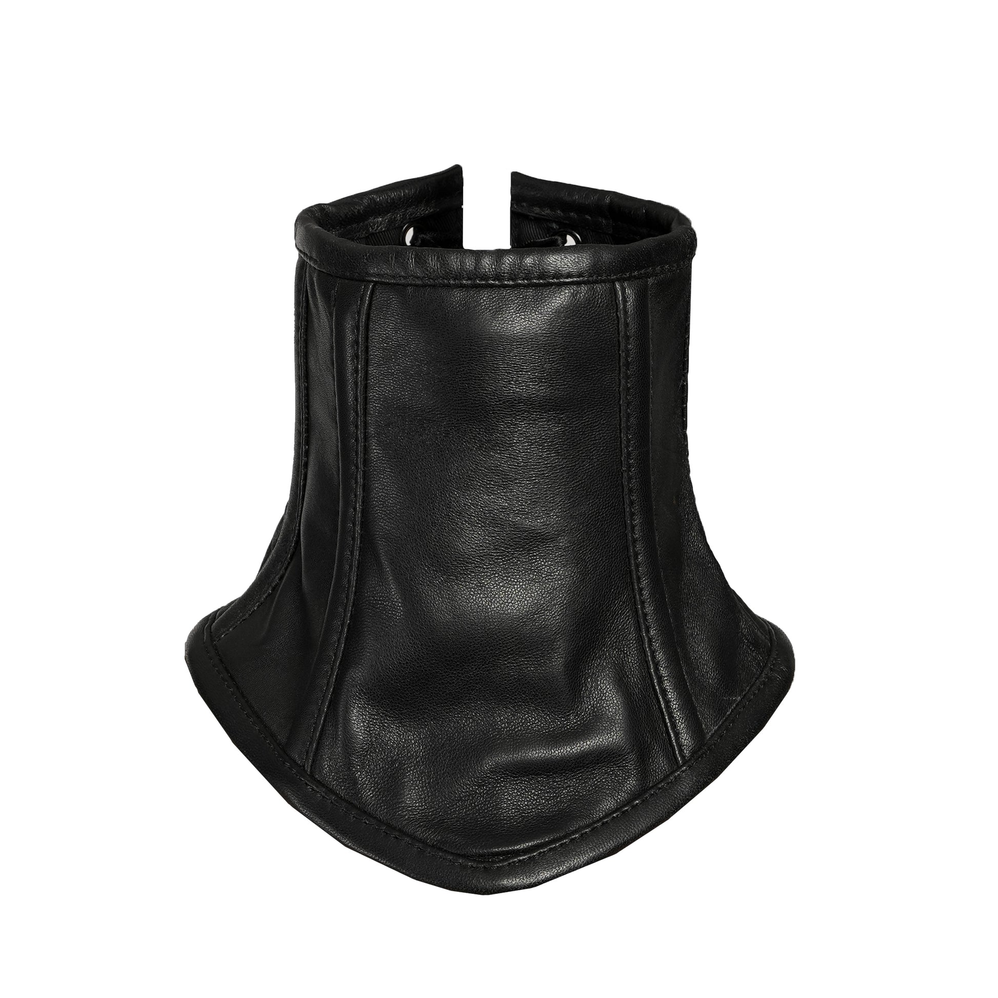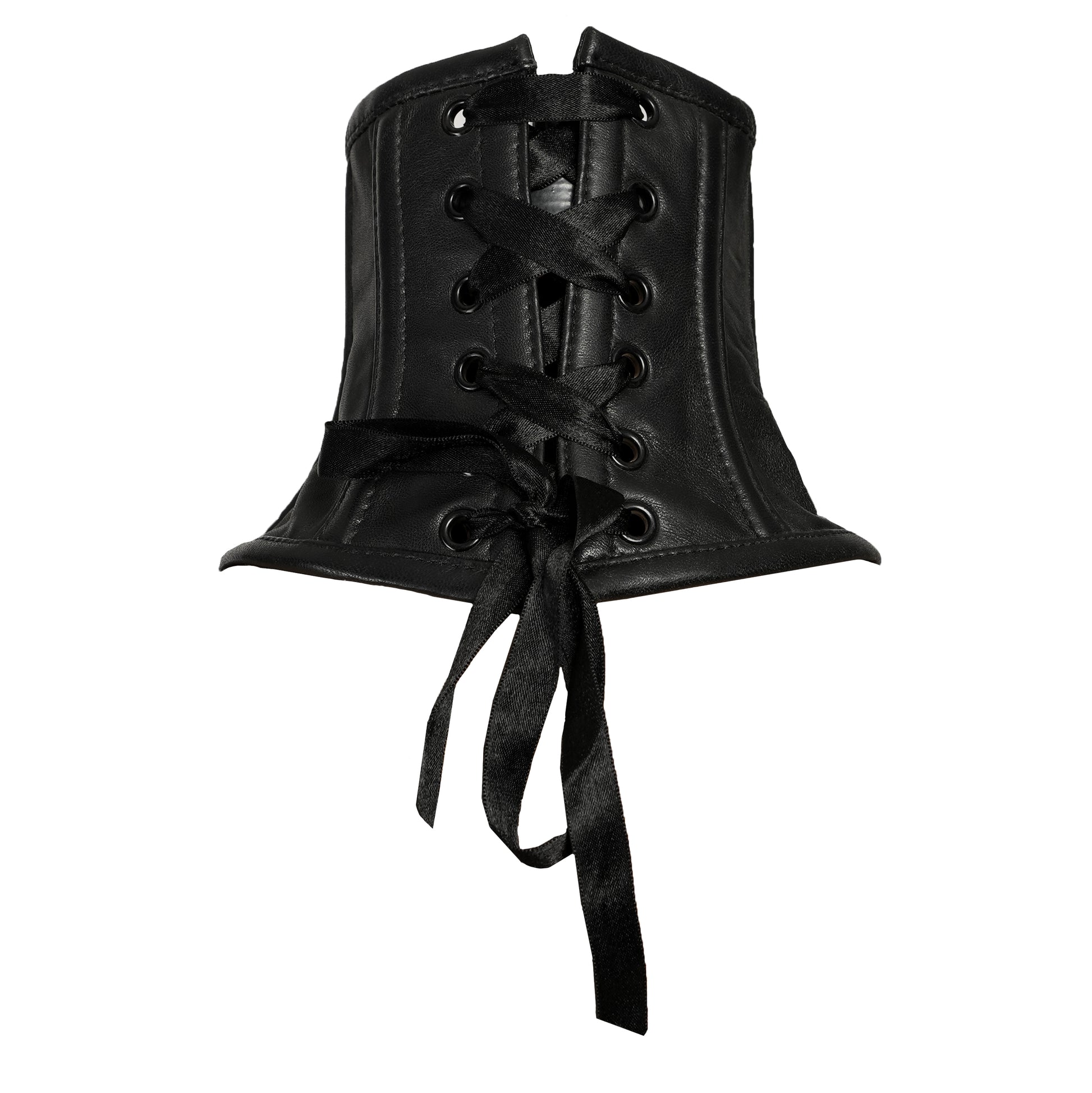 Black Leather Neck Corset with Adjustable Satin Lace-Up