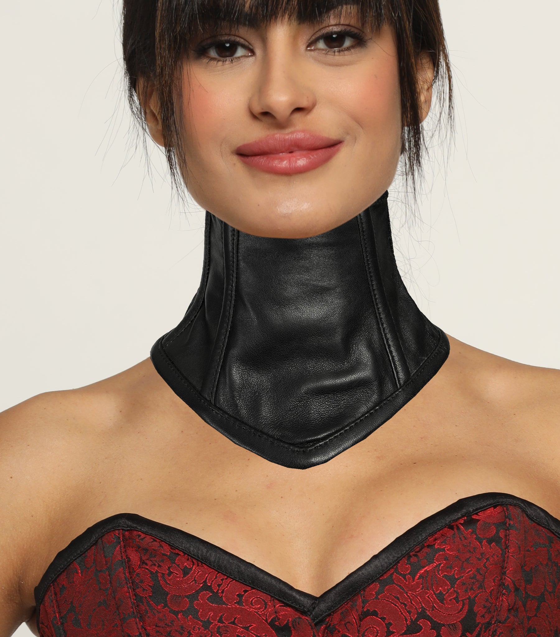 This Black Leather Neck Corset with Adjustable Lace-Up Choker ,a standout accessory that merges bold style with versatility. Crafted from leather, it enhances the neckline with a Bold design. At the Back lace-up satin Collor is ideal for customers seeking with a taste for contemporary style. Showcase this piece in your store with customization options to meet diverse fashion preferences.