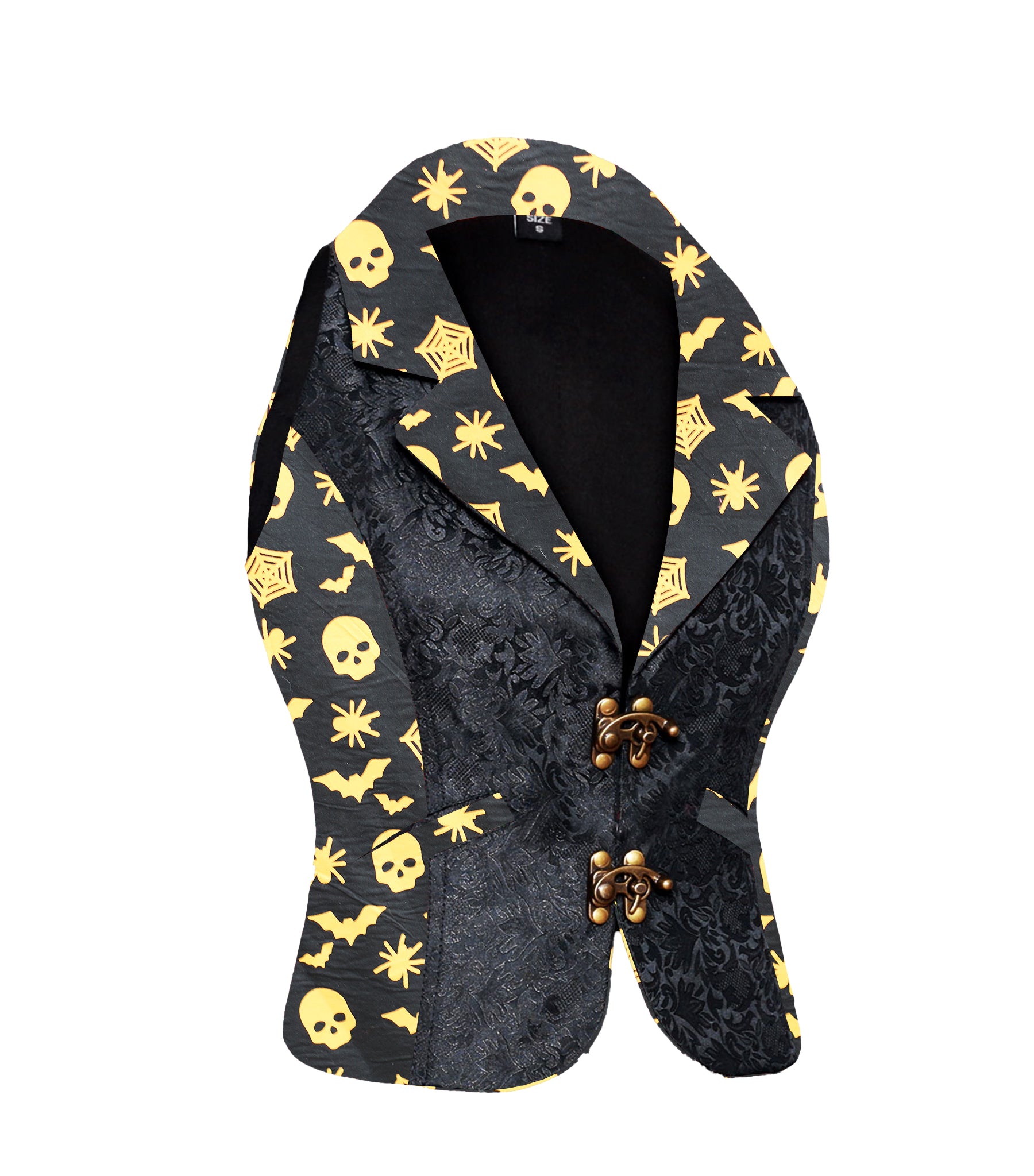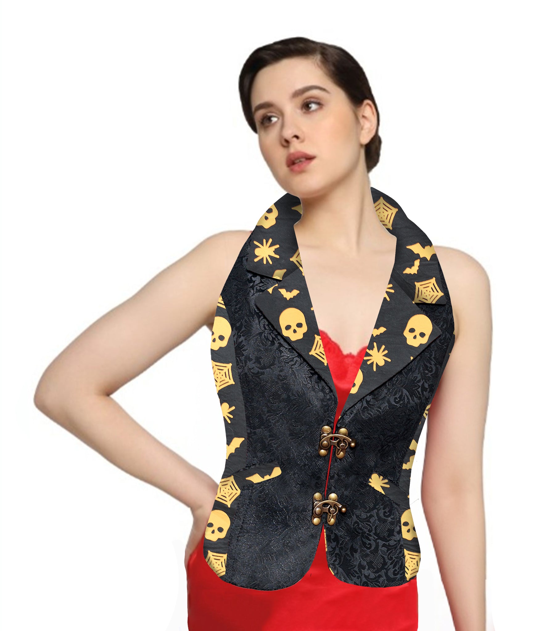 Design & Feature : Short Length Waistcoat With Notch Collar, Metallinc Clasp Opening & Adjustable At Back With Metal Buckles In Antique.