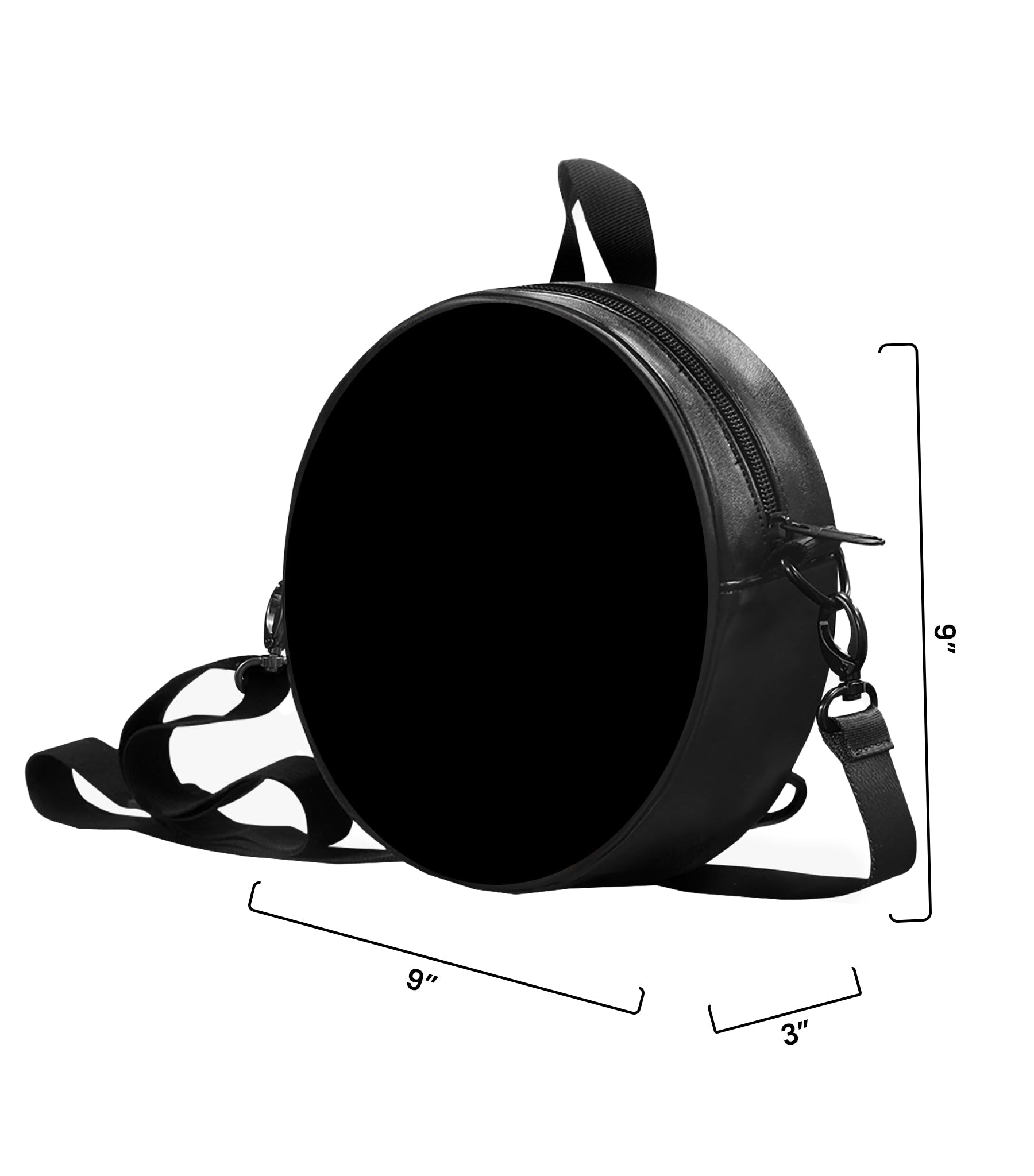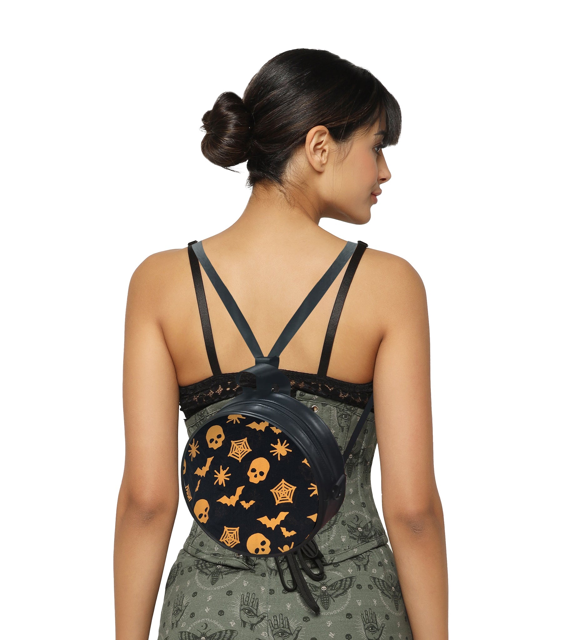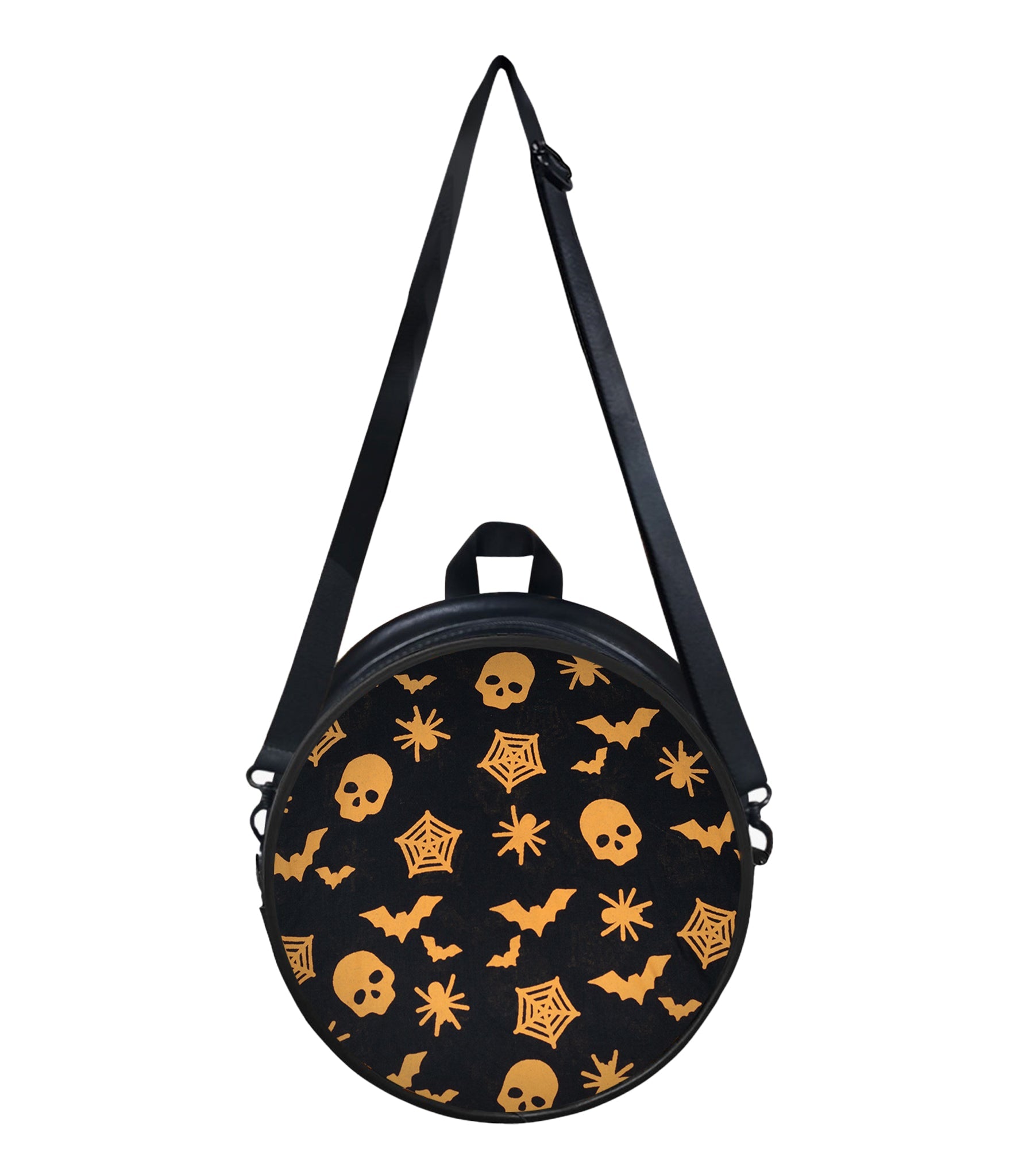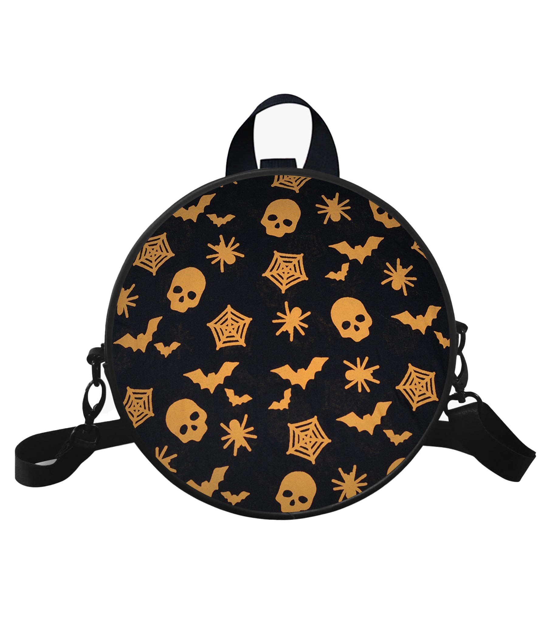 Bat Skull Printed Fabric Faux Leather Round Handbags