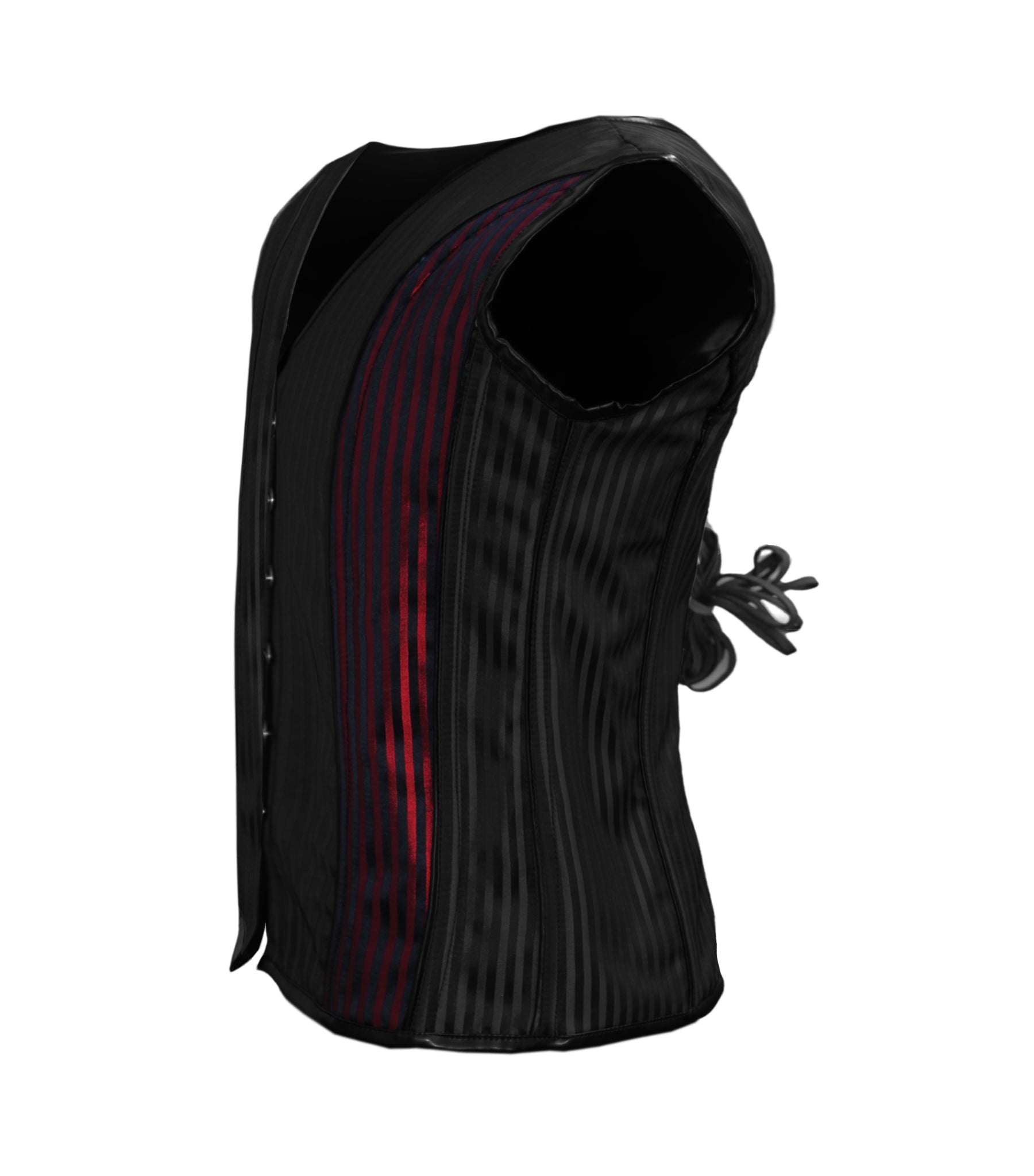 Black Red Strip 600 Brocade Waist Reducing Overbust Men's Corset