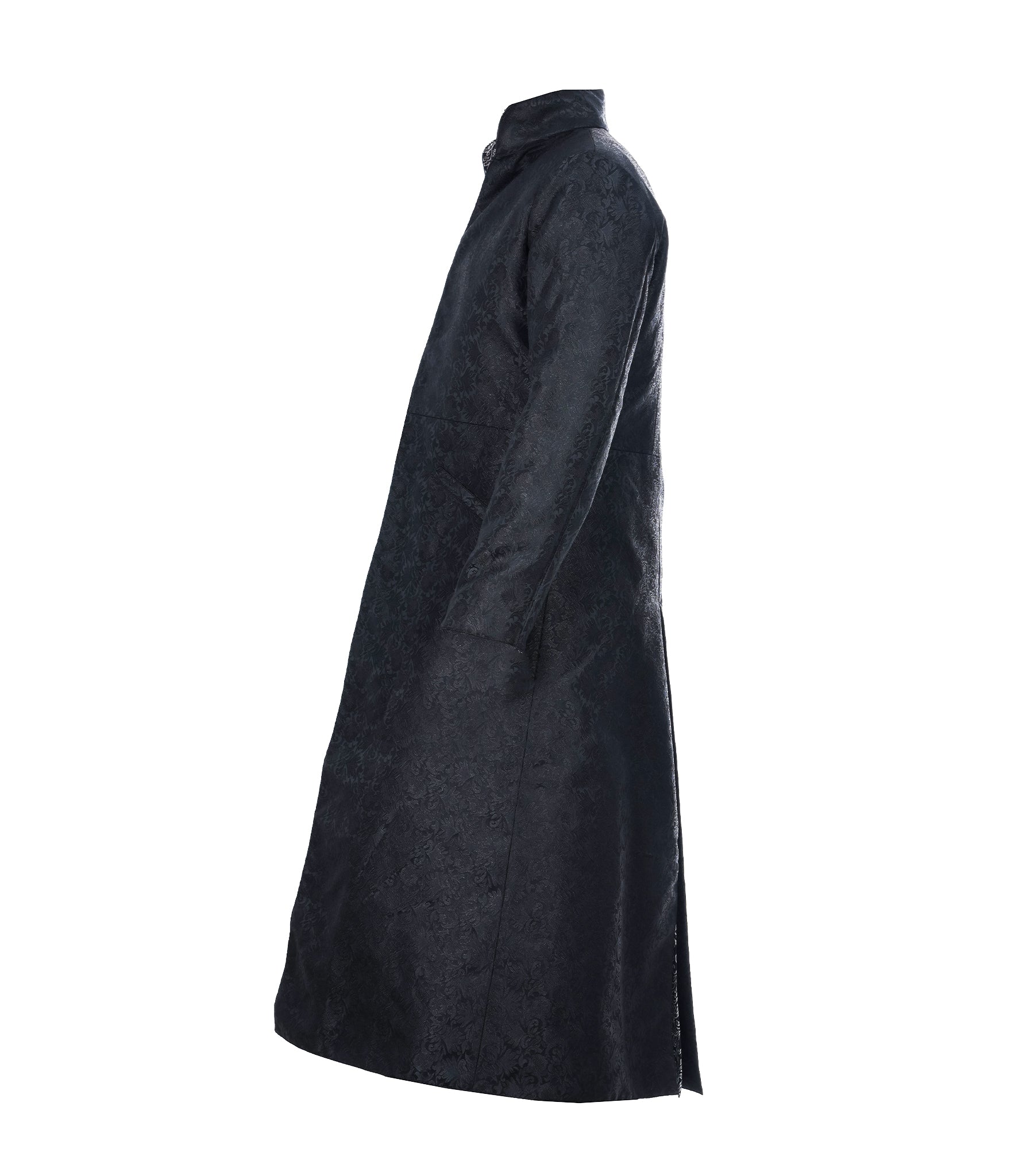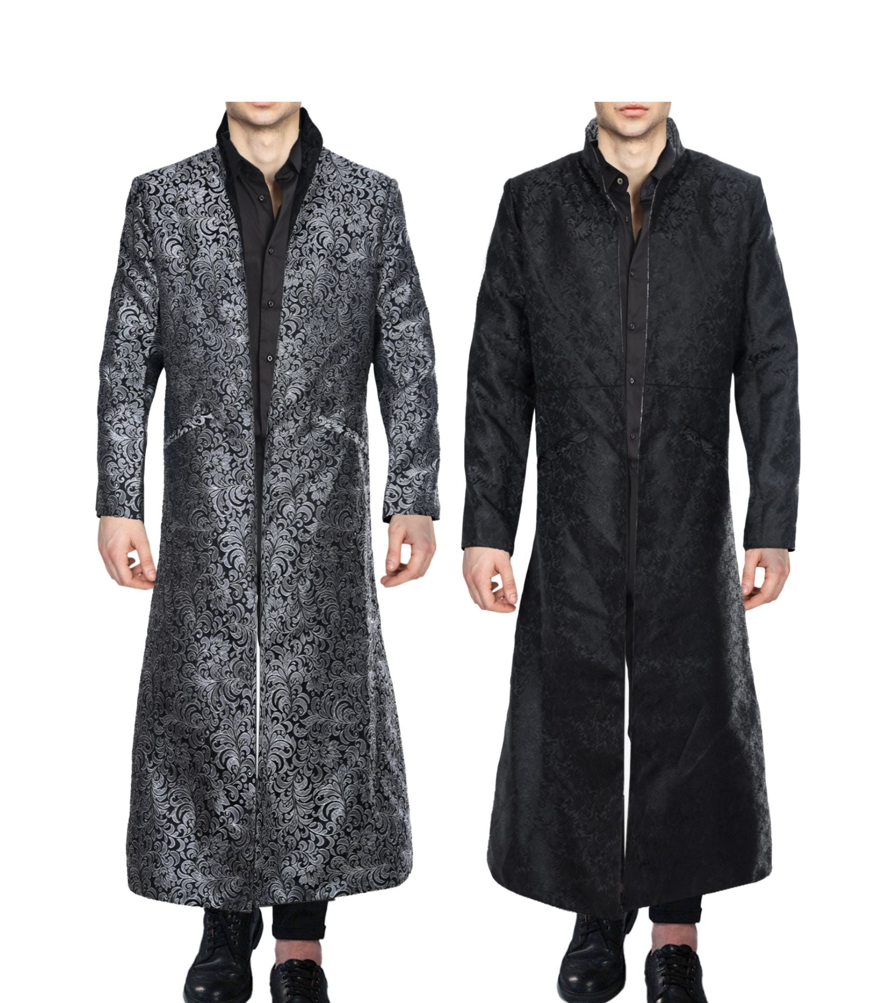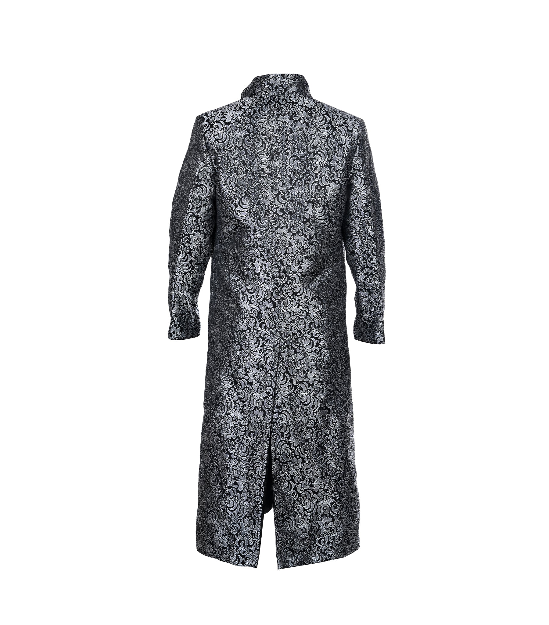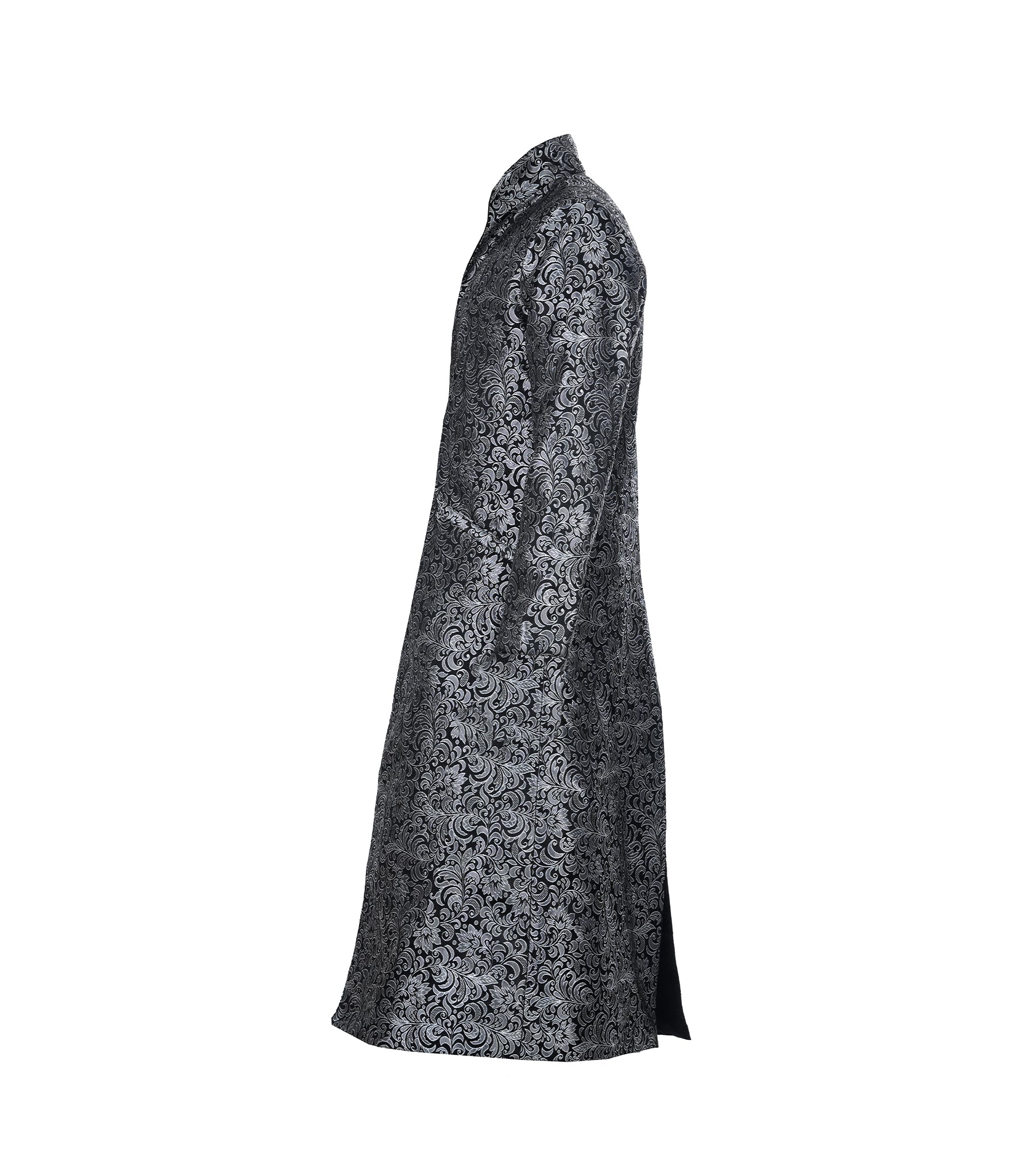 Black/Silver Brocade Mens Reversible Long Coat - Wholesale