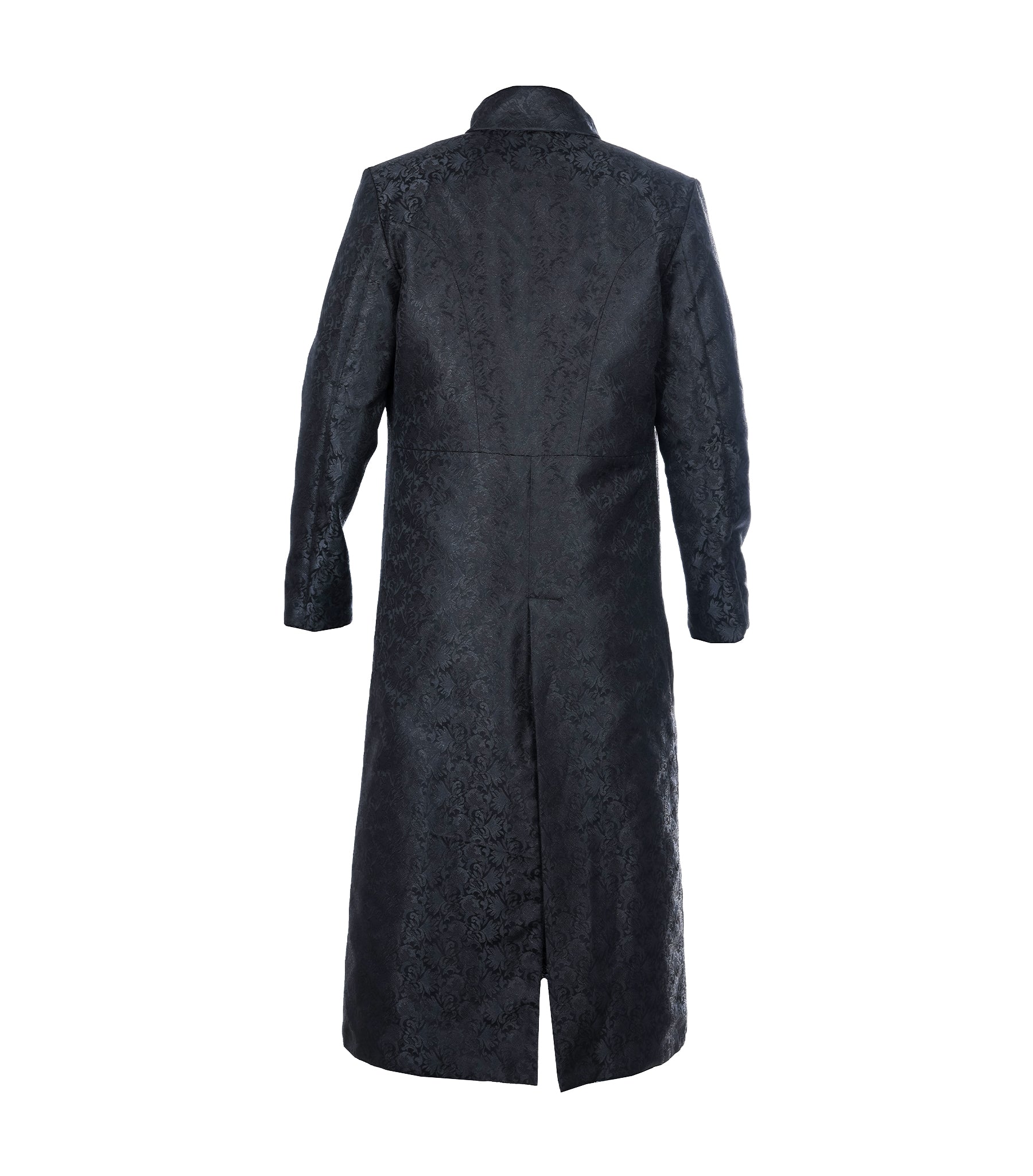 Description: Stock Up your collection with this Black/Silver Brocade Reversible Long Coat. Made from black and silver brocade fabric, this long coat has padded shoulders for a great fit and two handy pockets. The reversible design means your customers get two stylish looks in one coat. Perfect for goth and steampunk occasion.