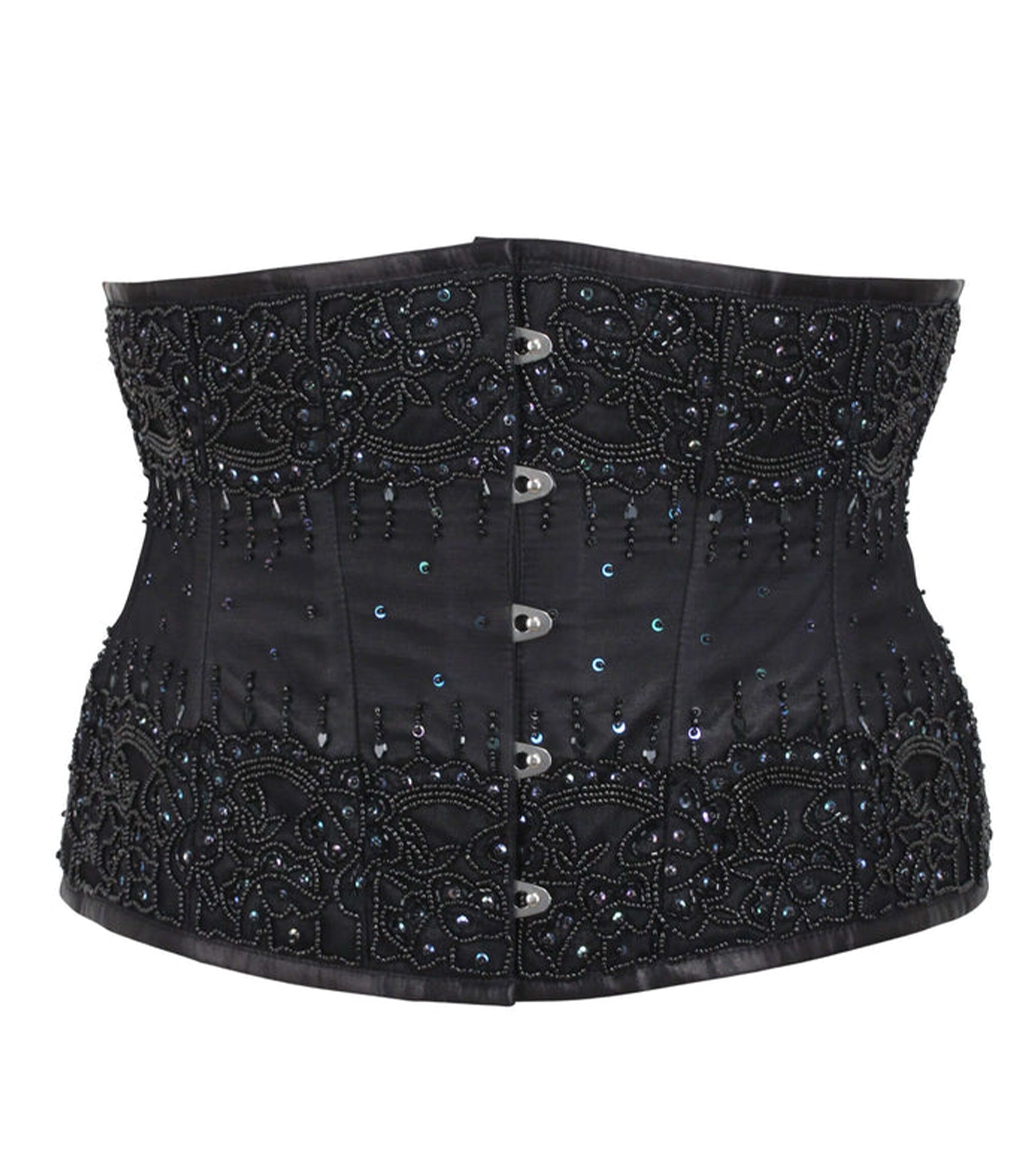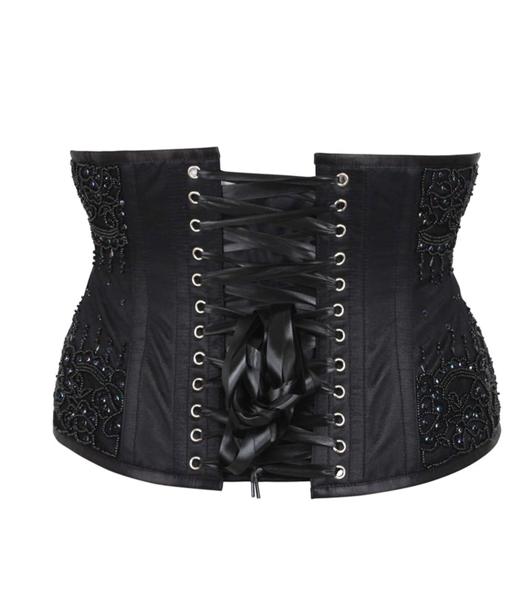 Black Satin Embroidered Waist Reducing Underbust Corset