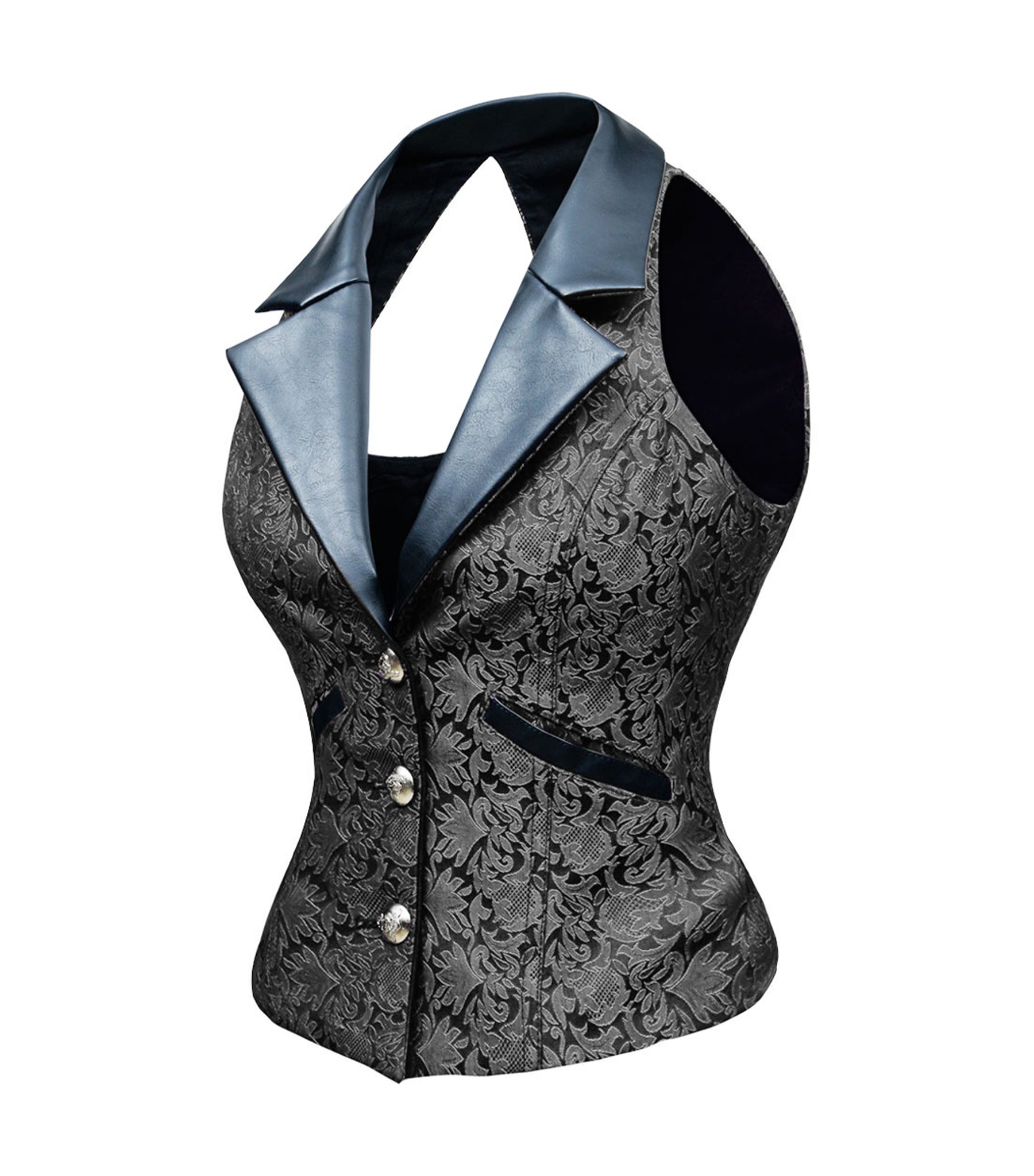 - Design & Feature: Short Length Waistcoat With Notch Collar, Metallic Snap Button Opening and Beautiful Structured Key Hole At Back