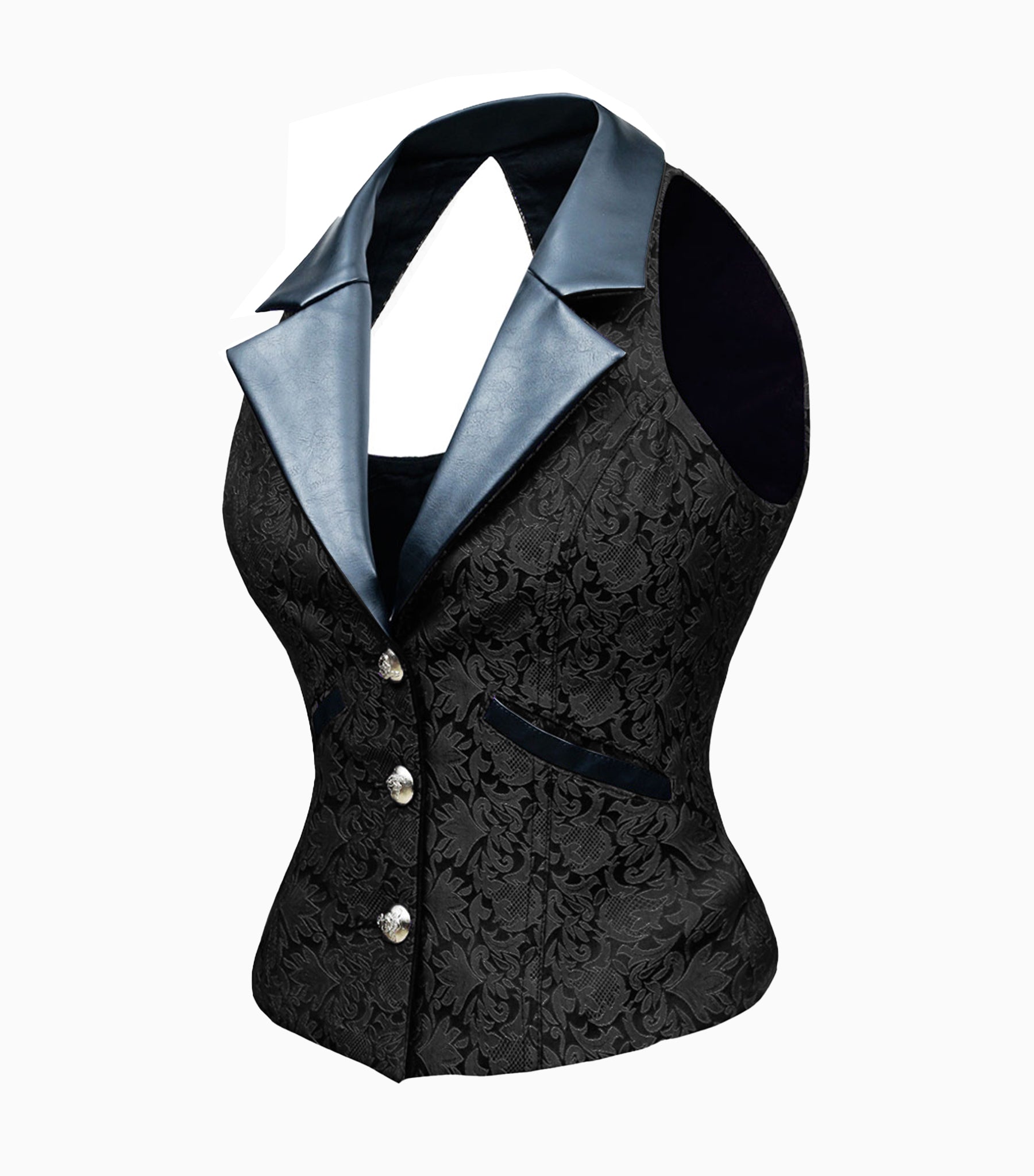 - Design & Feature: Short Length Waistcoat With Notch Collar, Metallic Snap Button Opening and Beautiful Structured Key Hole At Back