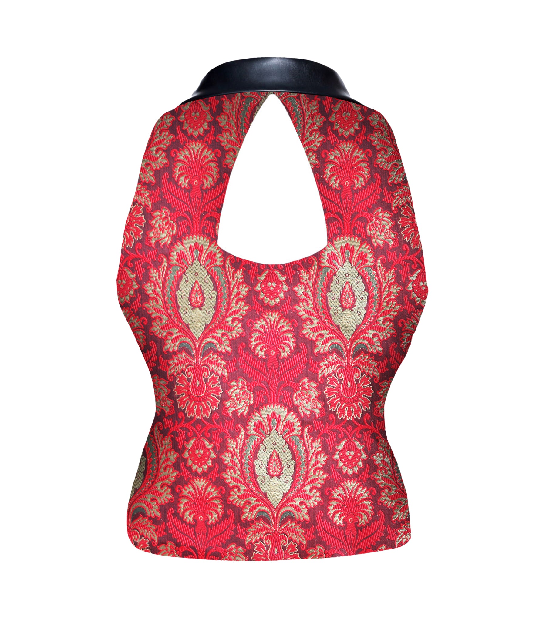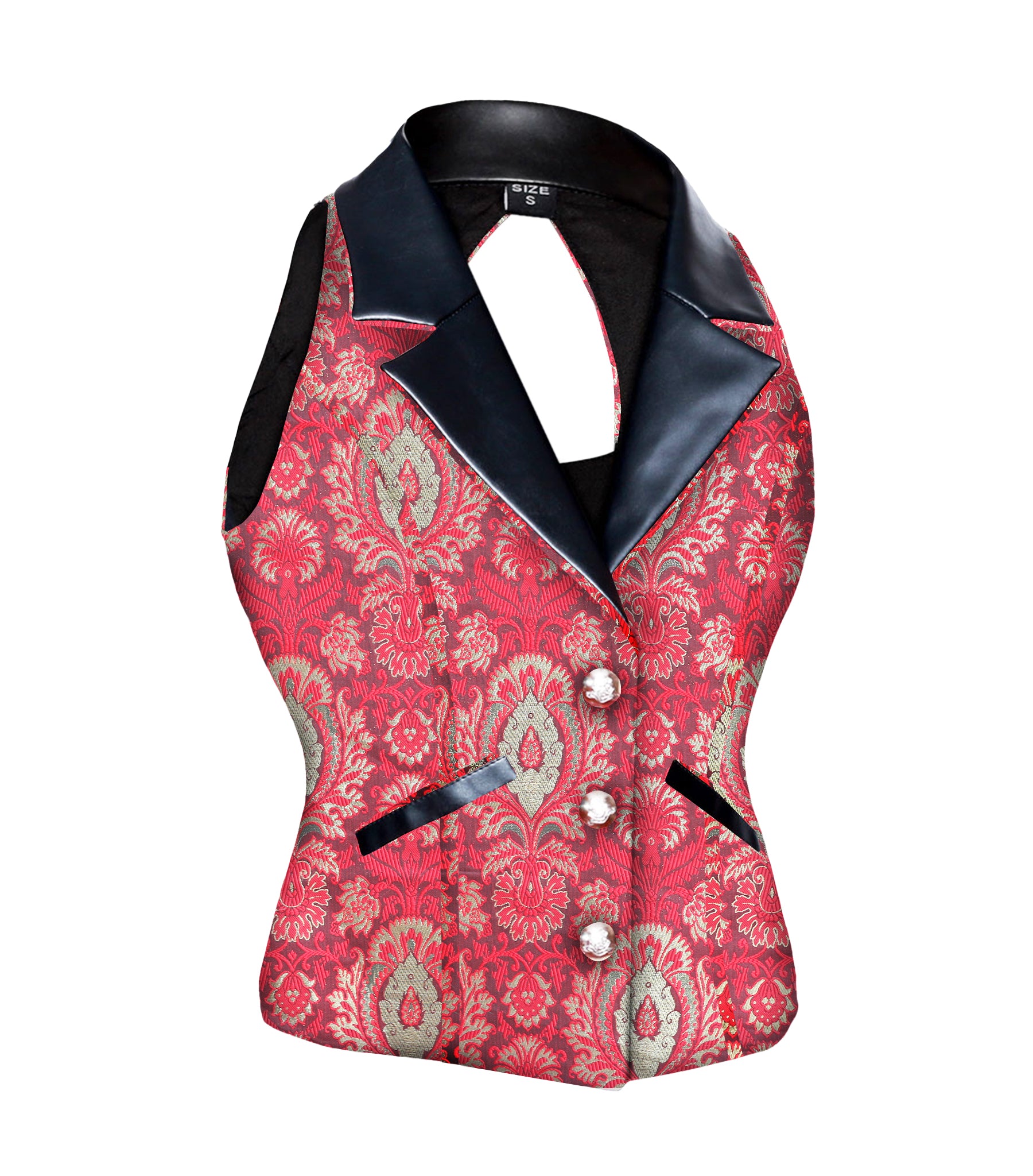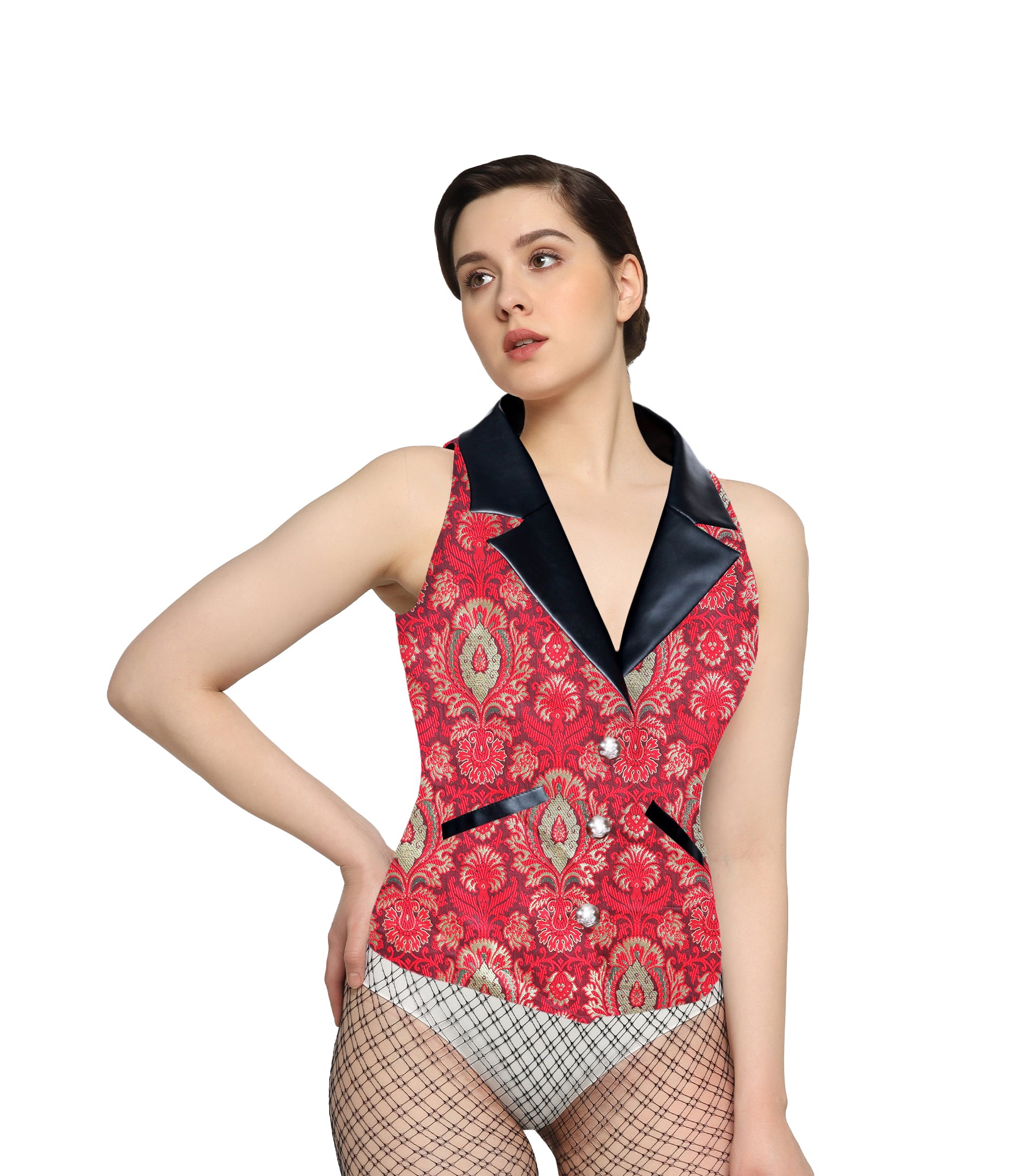 Camille Redgold Jacquard Fabric Notch Collar Waistcoat
