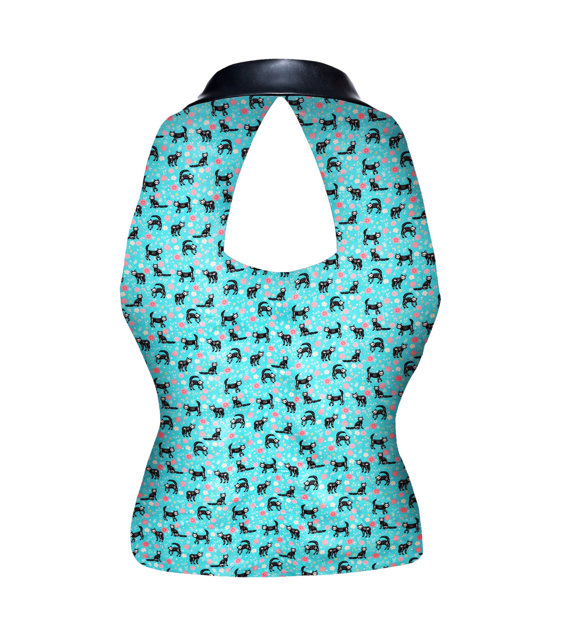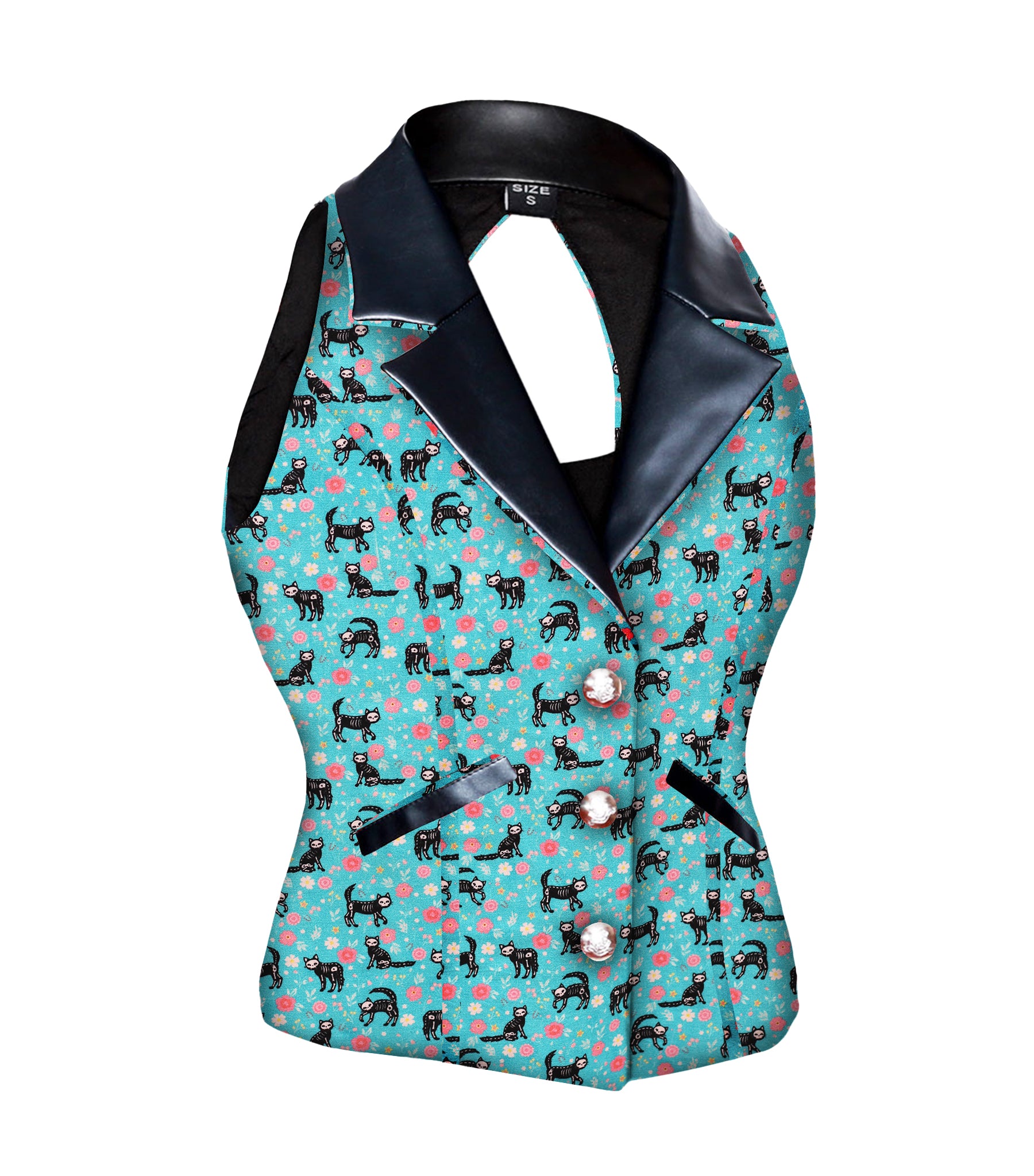 Camille Cat Printed Fabric Notch Collar Waistcoat