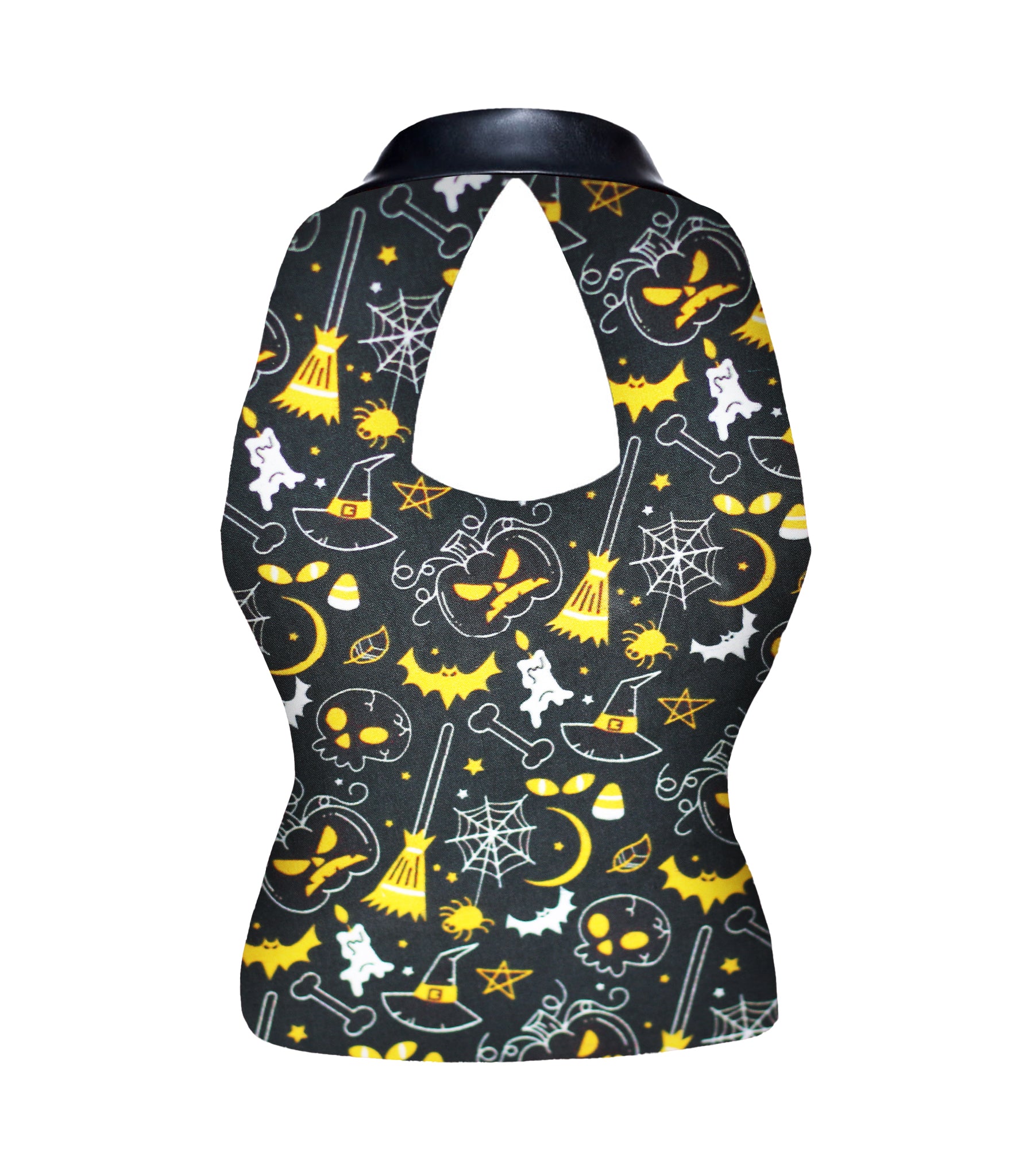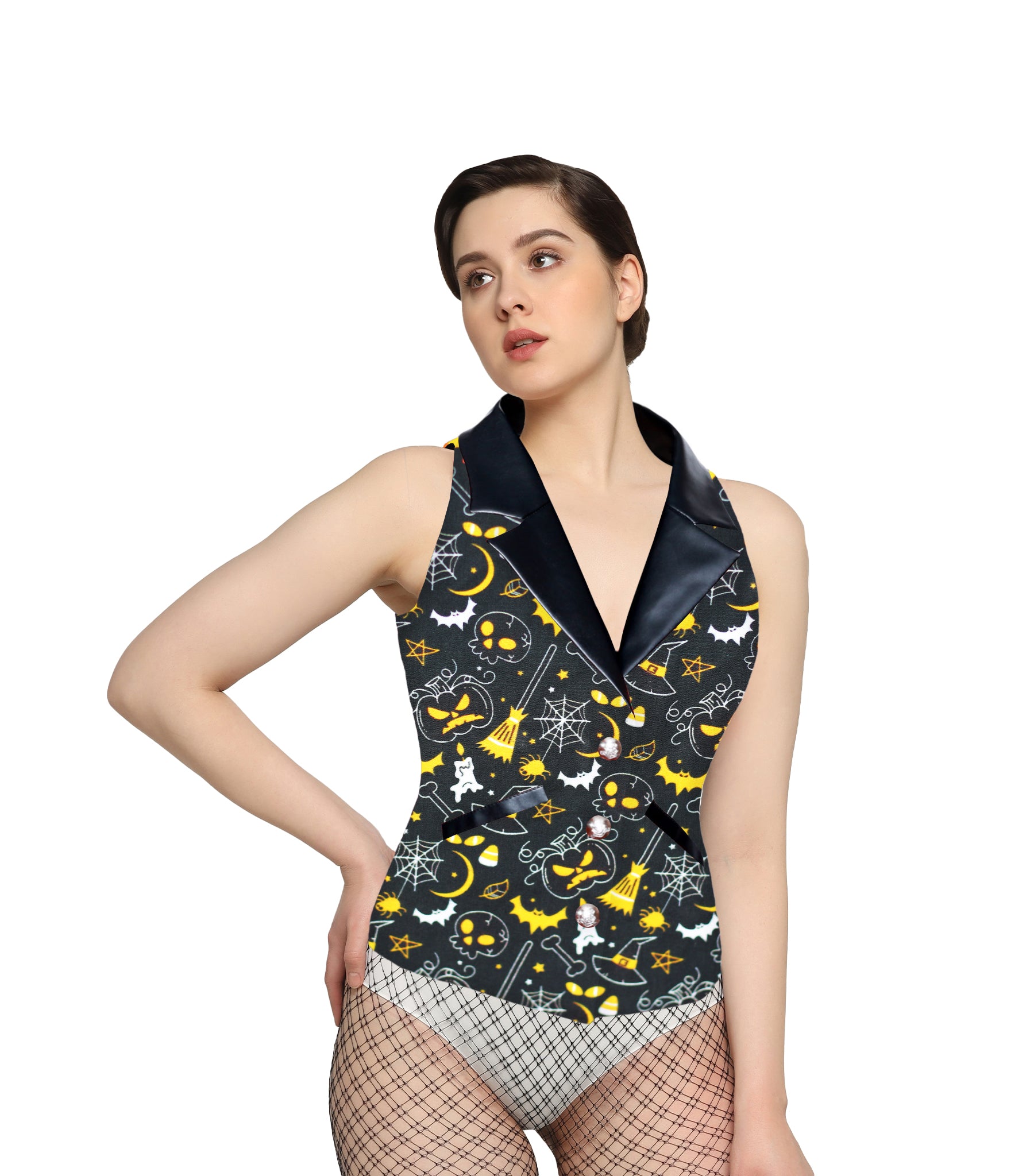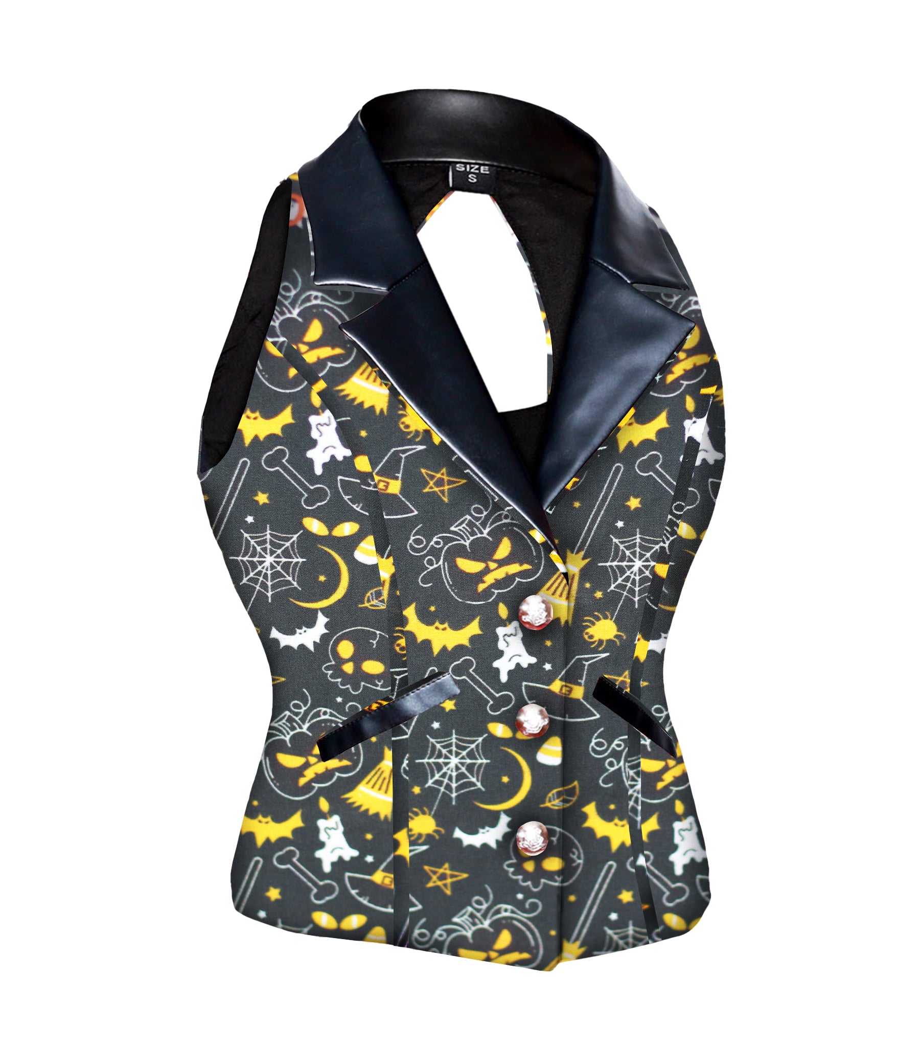 Camille Broom pamking bat Printed Fabric Notch Collar Waistcoat