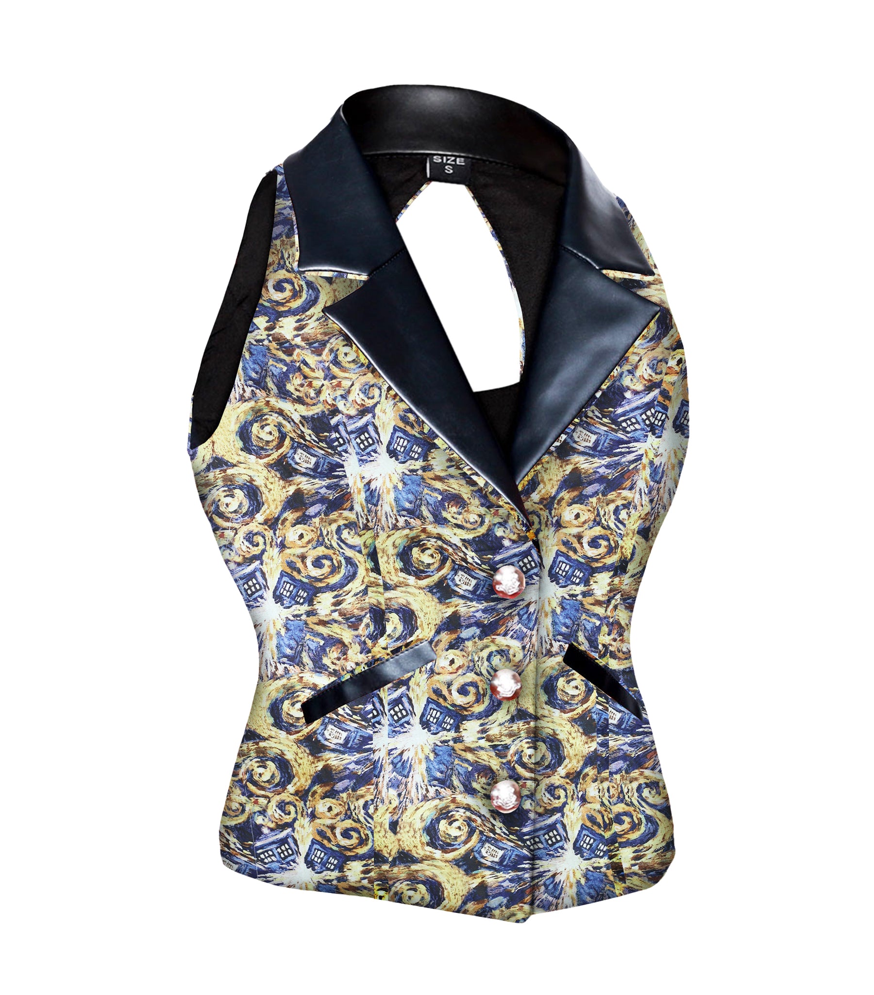 Camille Tardis Printed Fabric Notch Collar Waistcoat