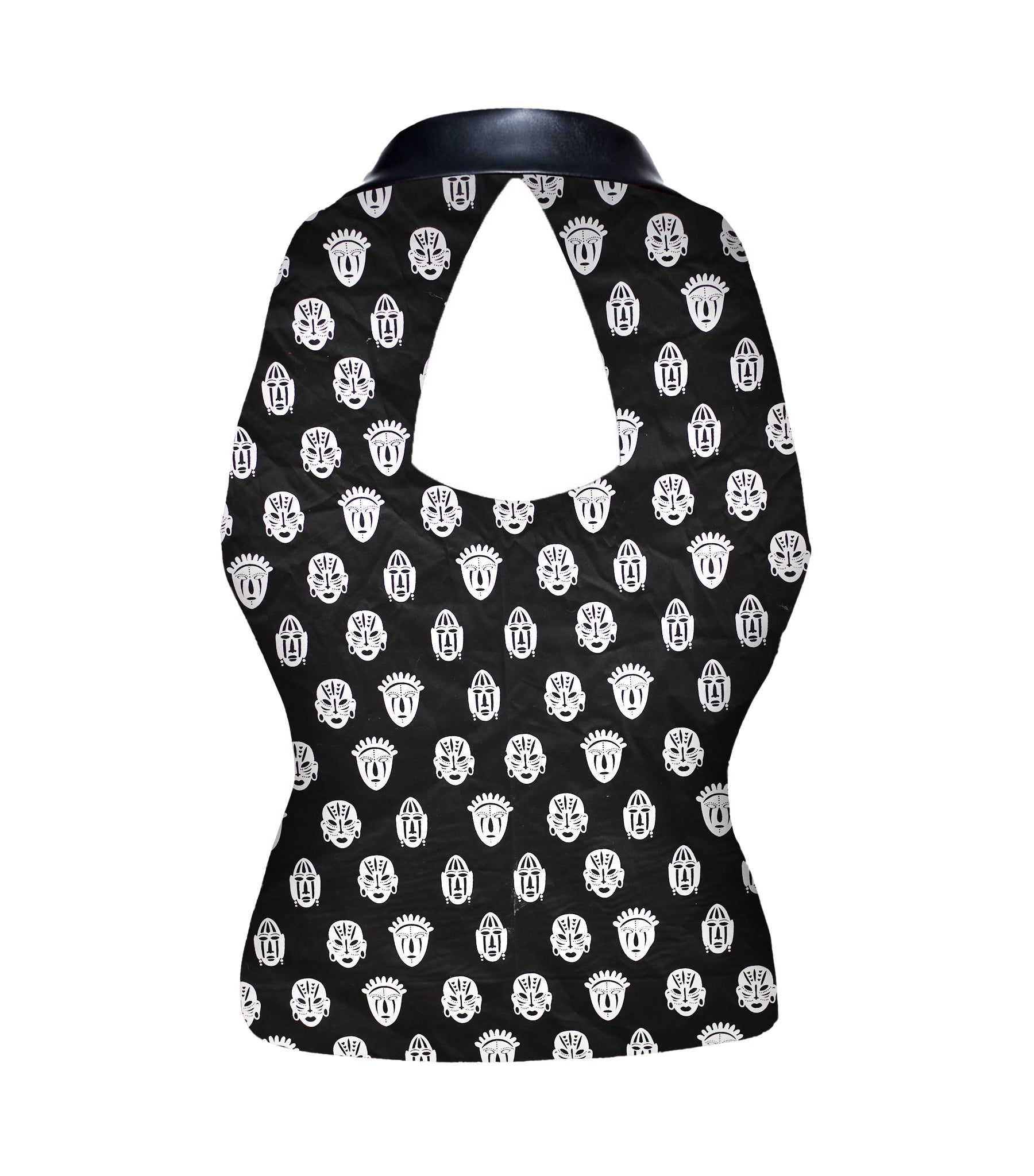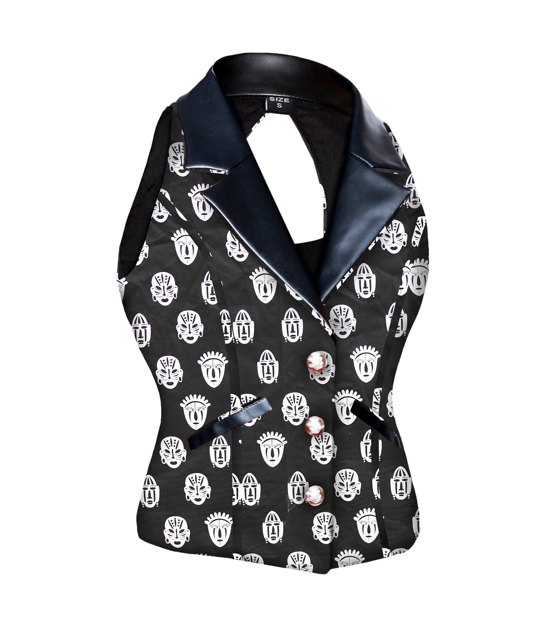 Camille Tribal Printed Fabric Notch Collar Waistcoat