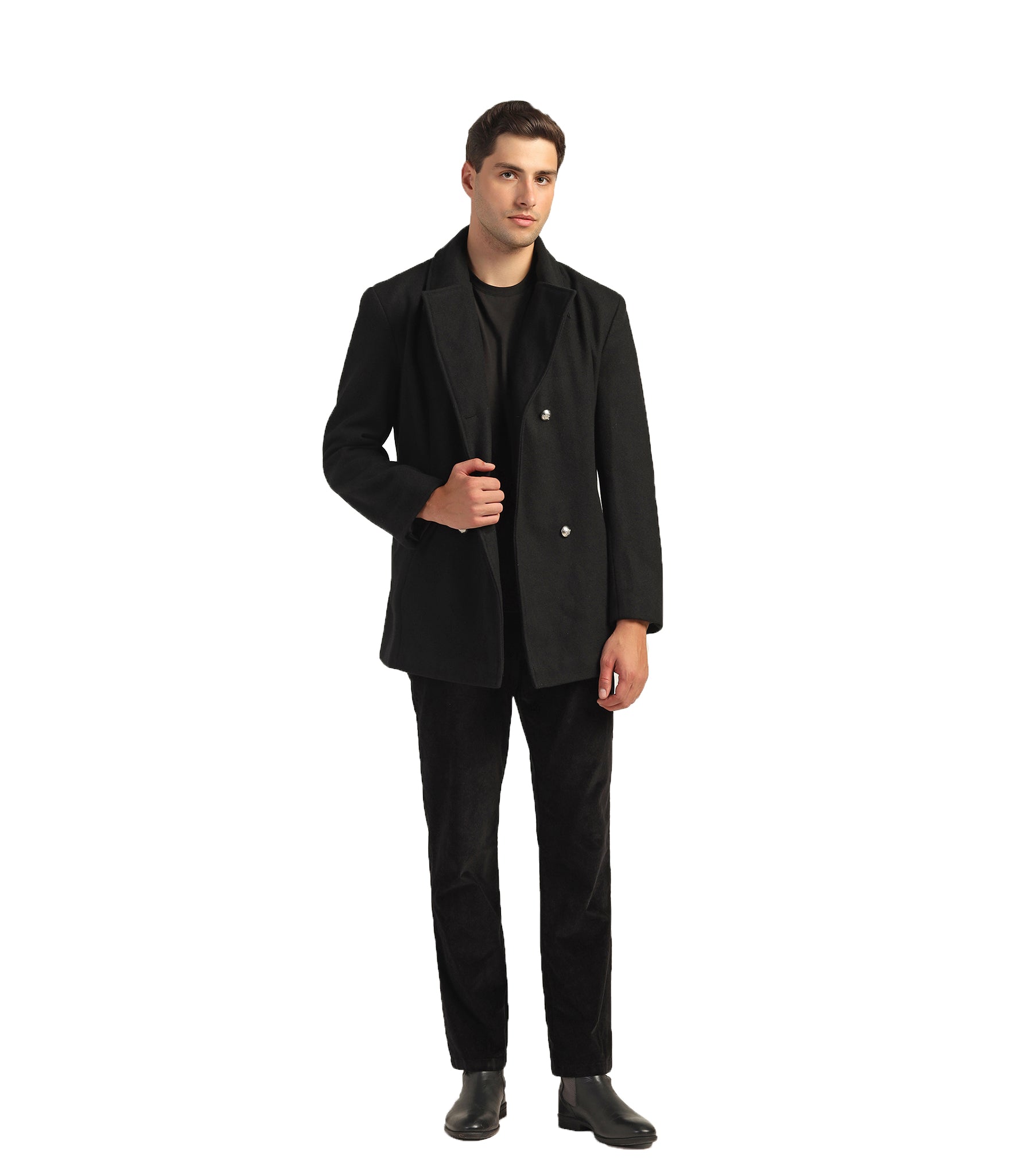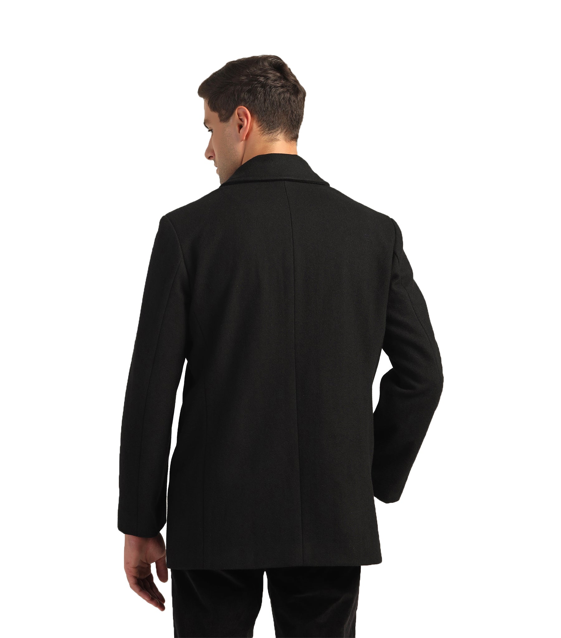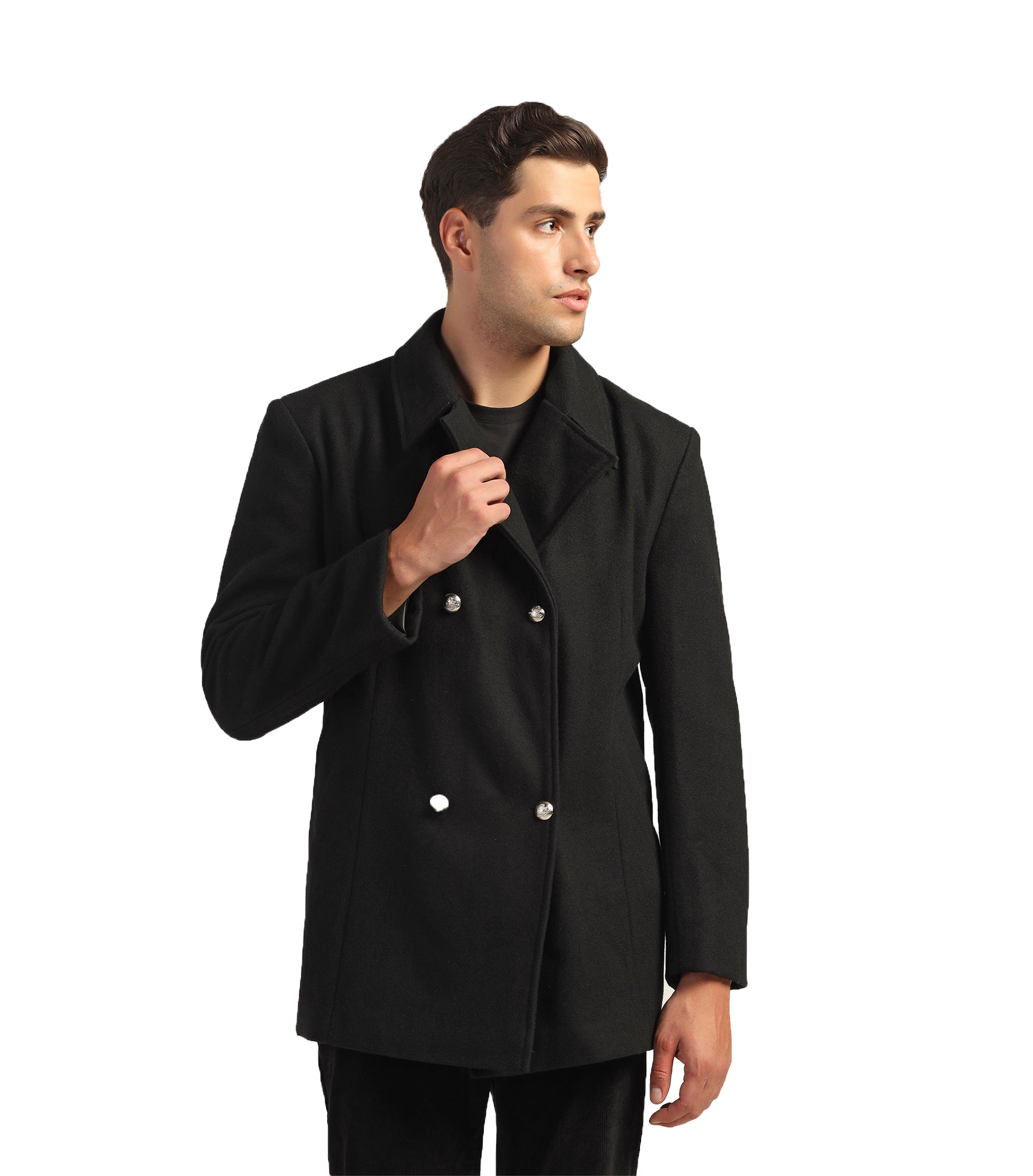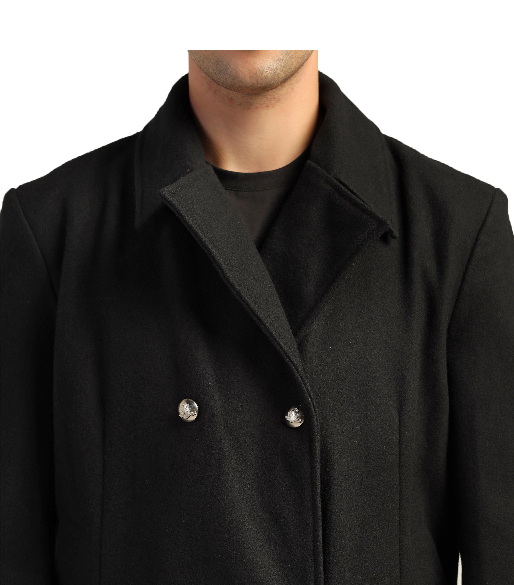 Classic Black Felt Double-Breasted Coat With Silver Buttons