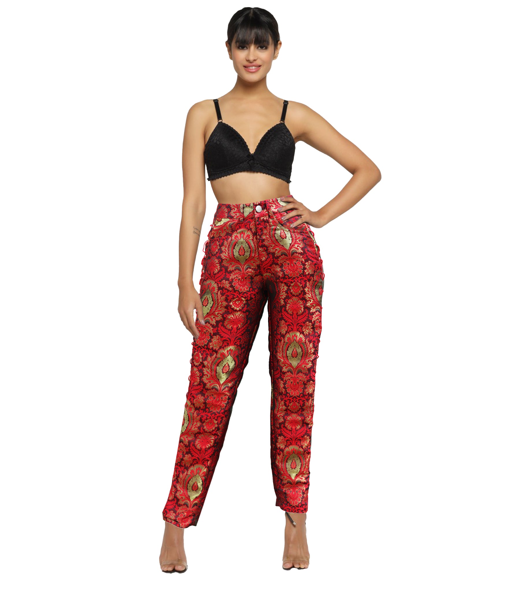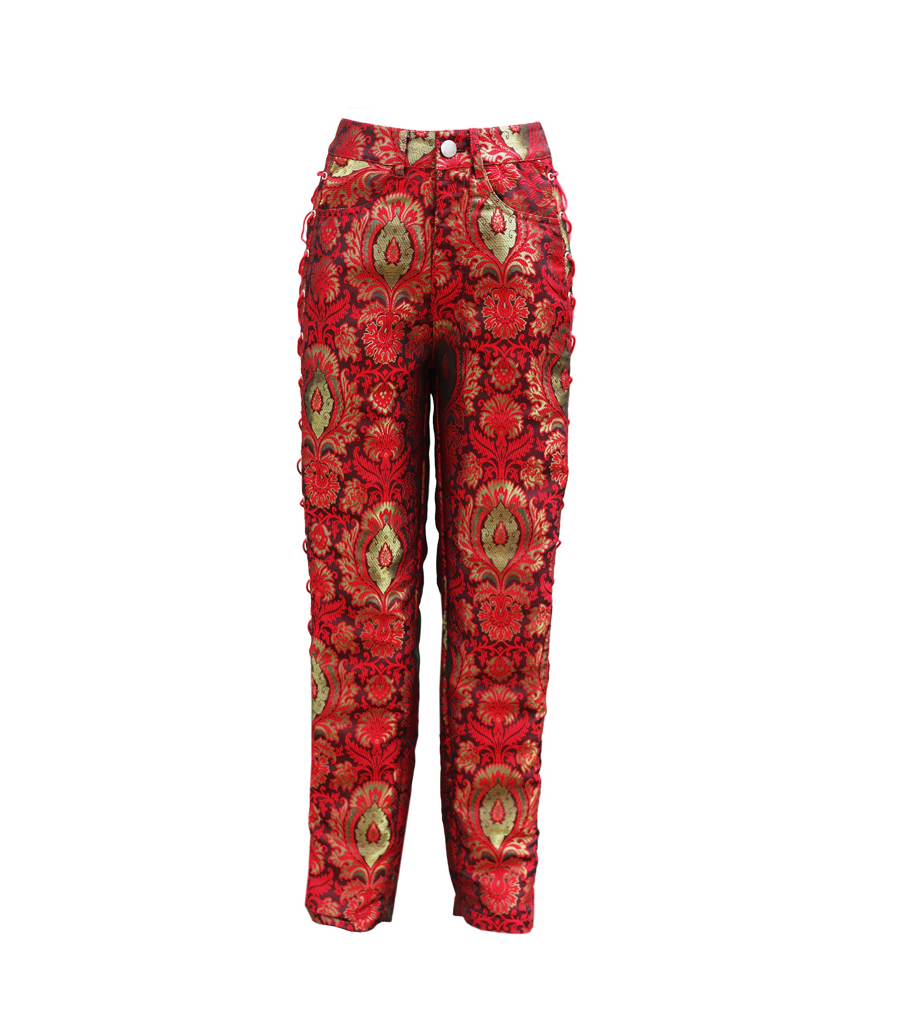 Red Gold Jacquard Side Lace Trouser