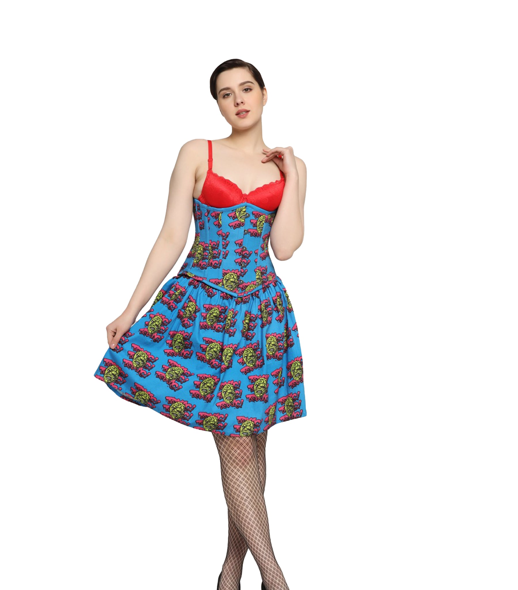 Devil printed Waist Reducing Underbust Corset Dress