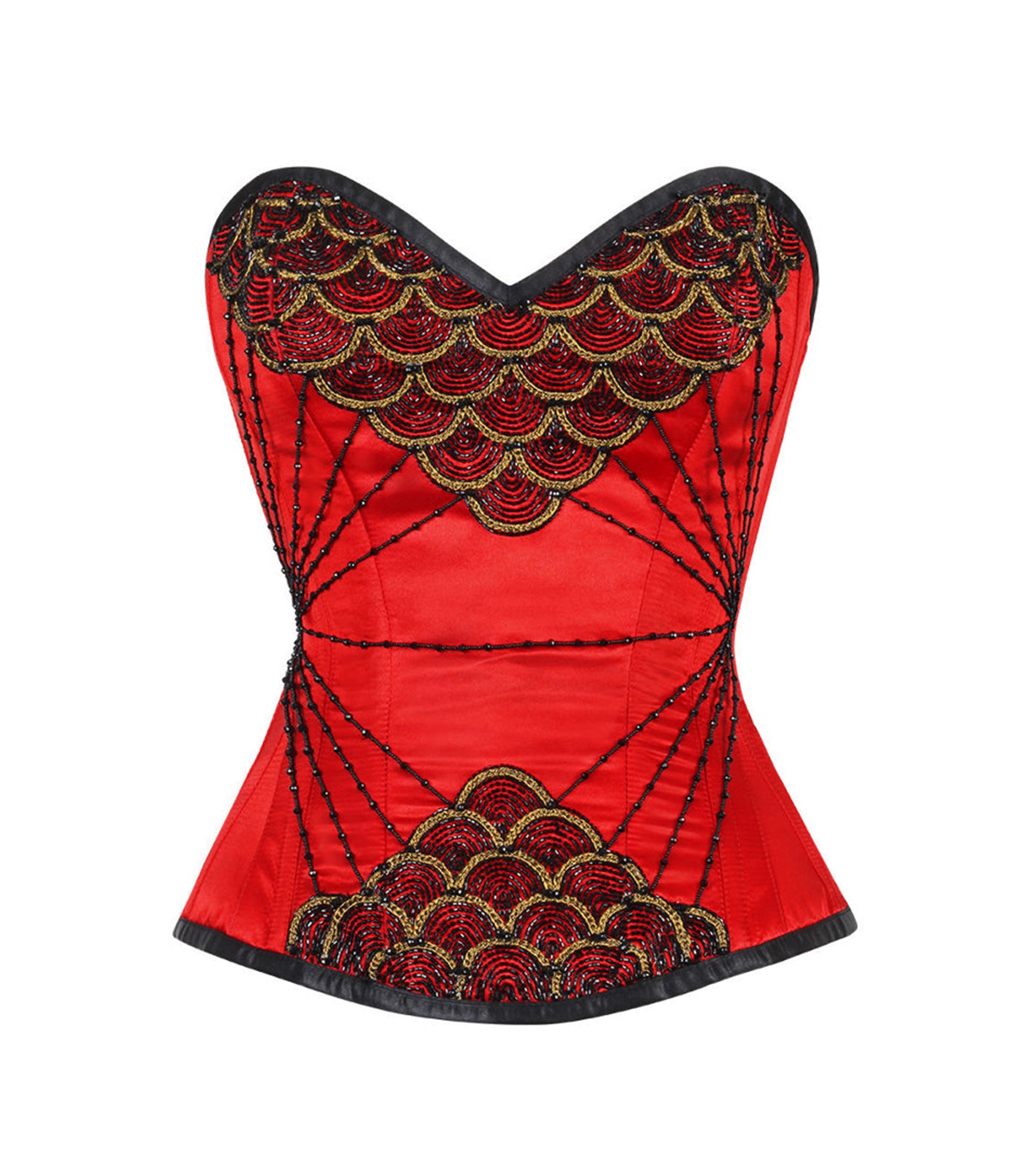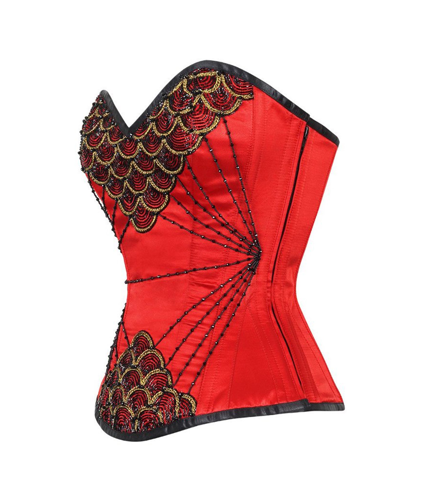 Fish Scale Embroidered Red Overbust Corset