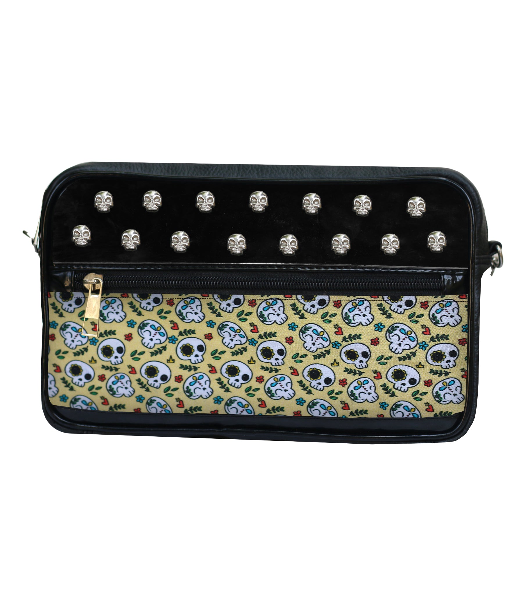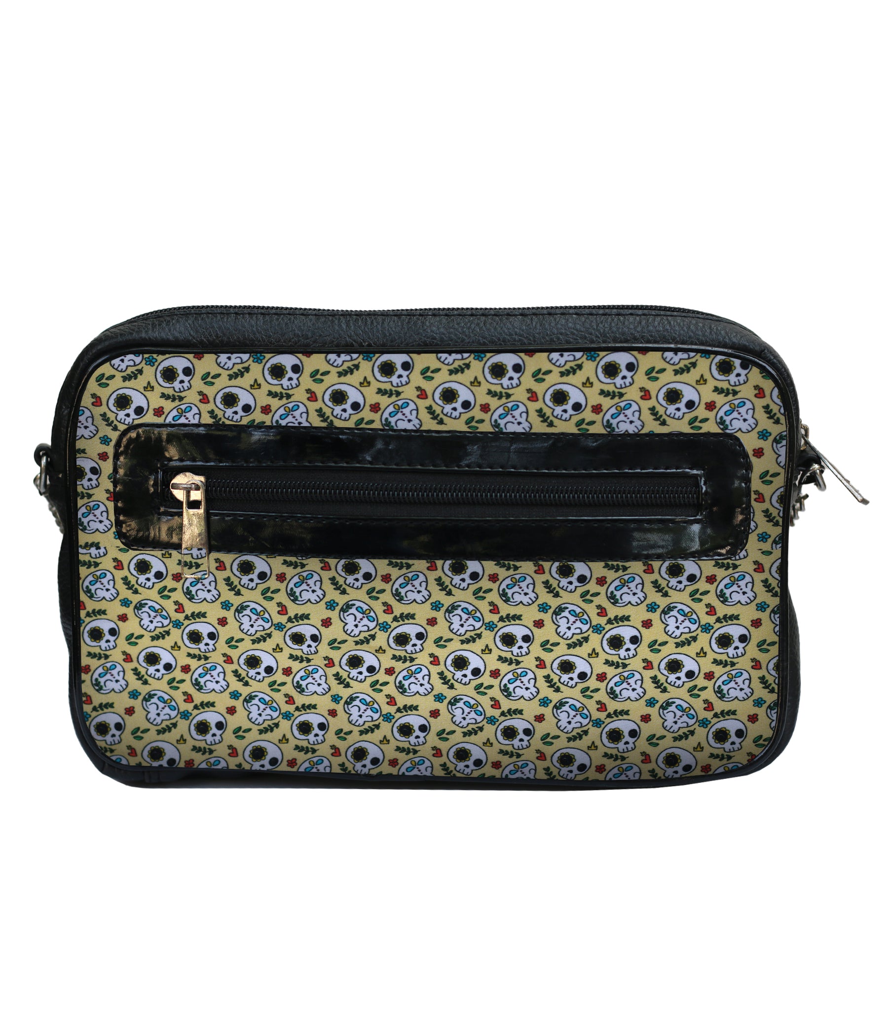 Materials: Soft Faux Leather, Flower Skull Print, Satin Lining, YKK (best in class zips and pullers, Silver Hardware.
