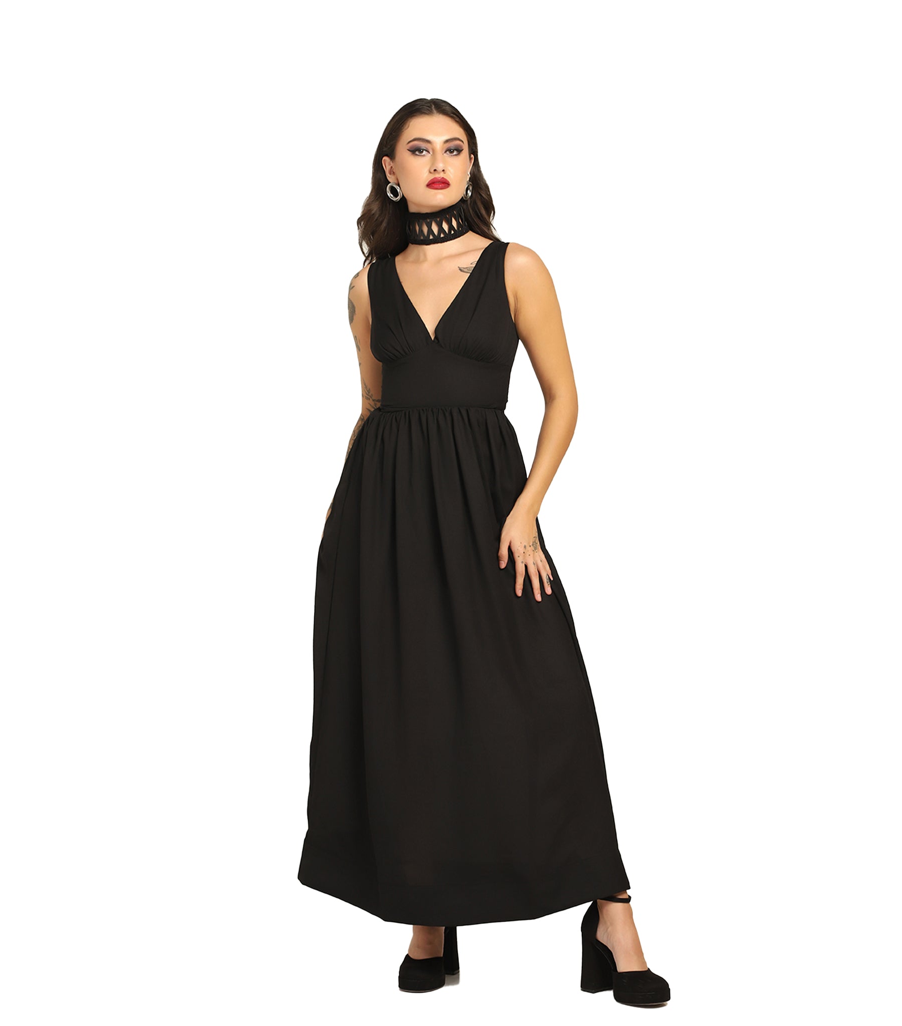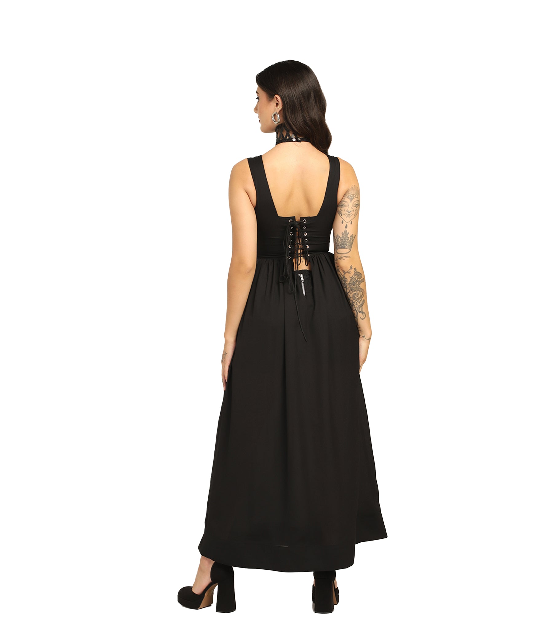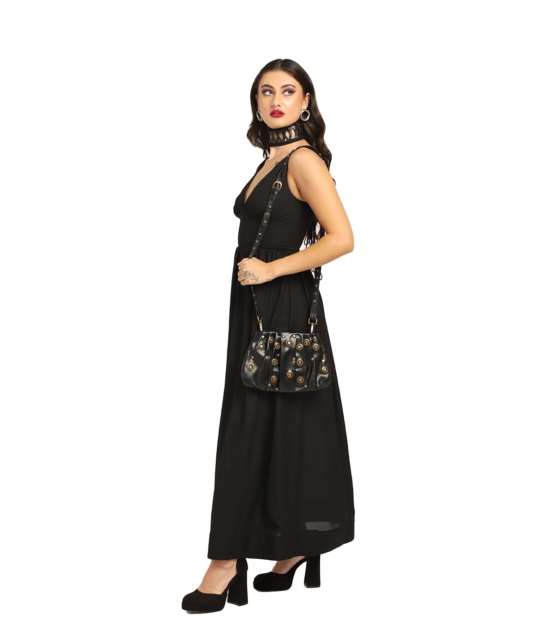 Goth Black Georgette Wholesale Maxi Dress