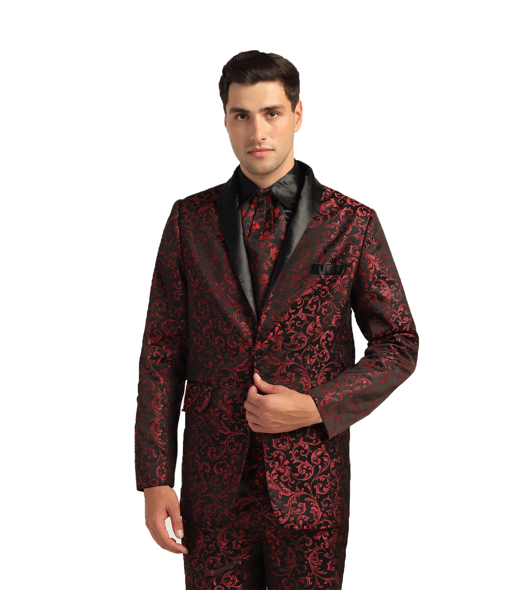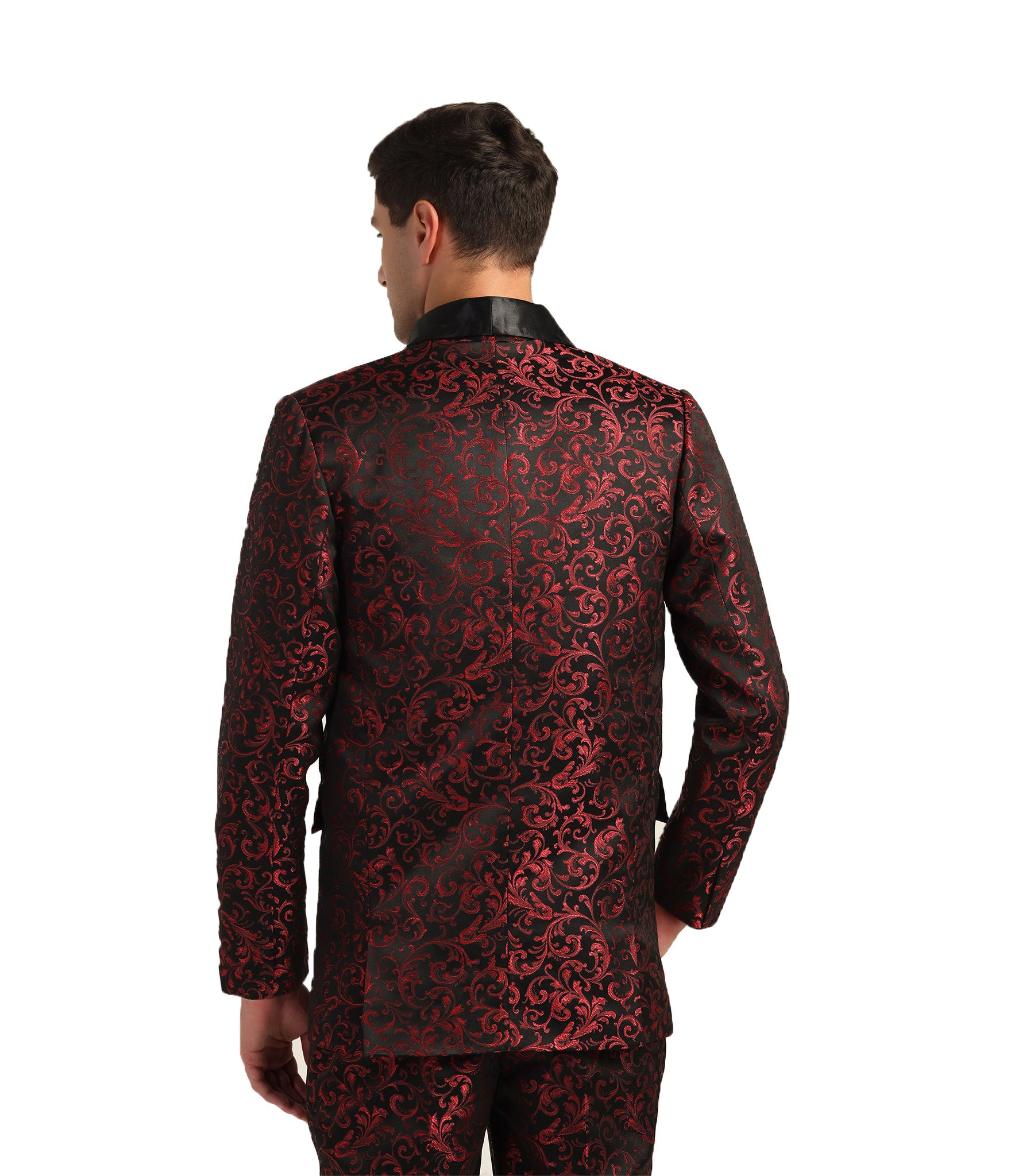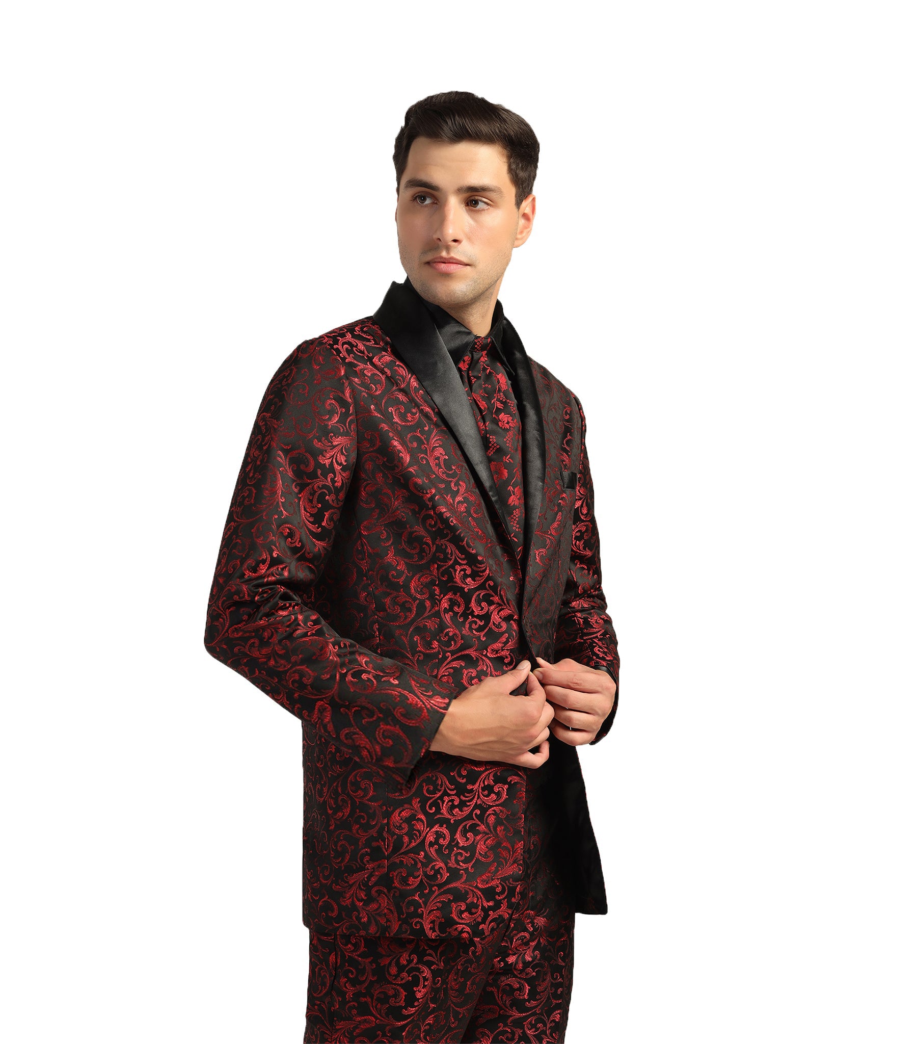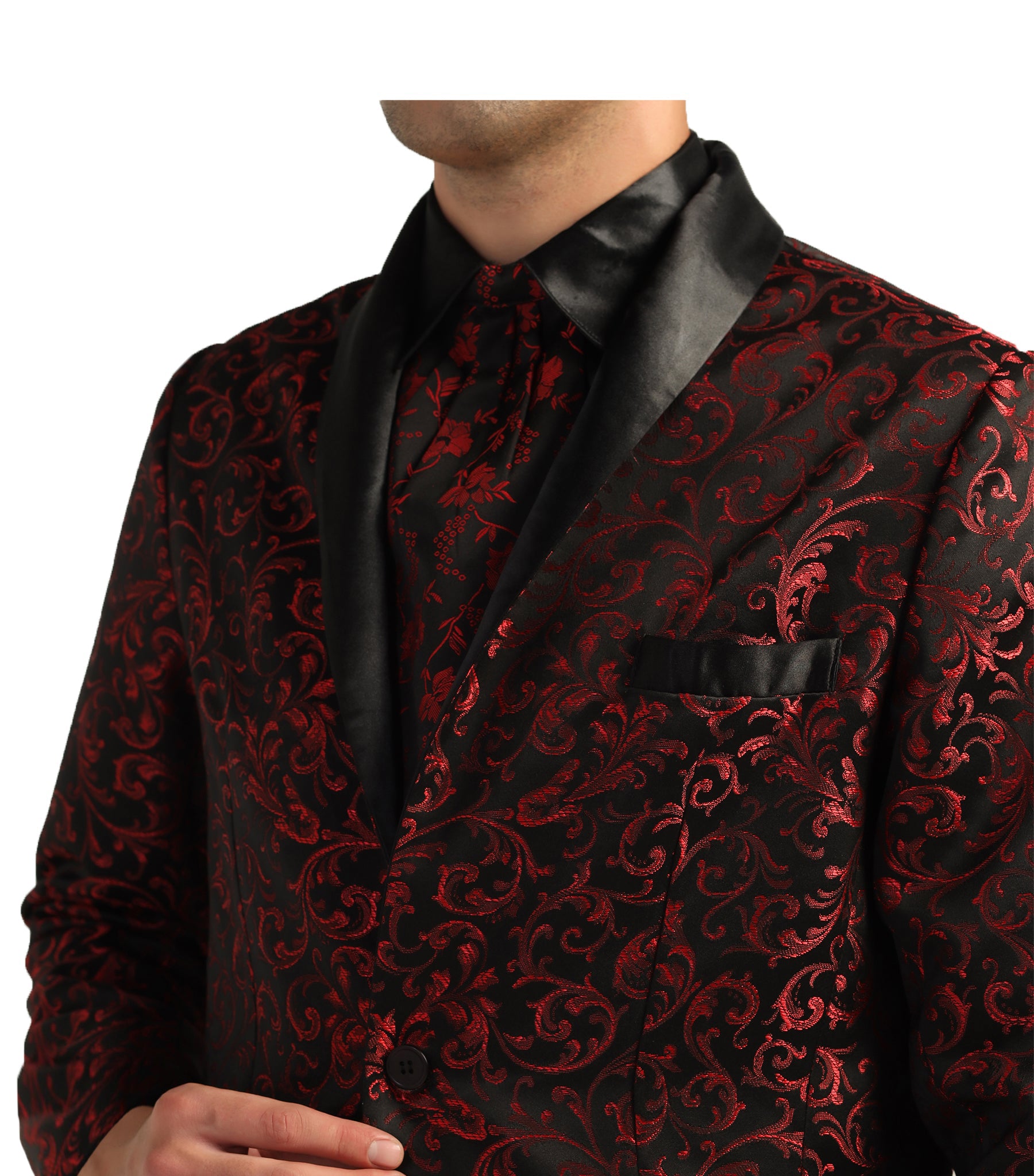 With timeless elegance this Gothic Red Black Brocade Wedding Coat Made from premium brocade fabric, it offers a blend of elegance and durability.
