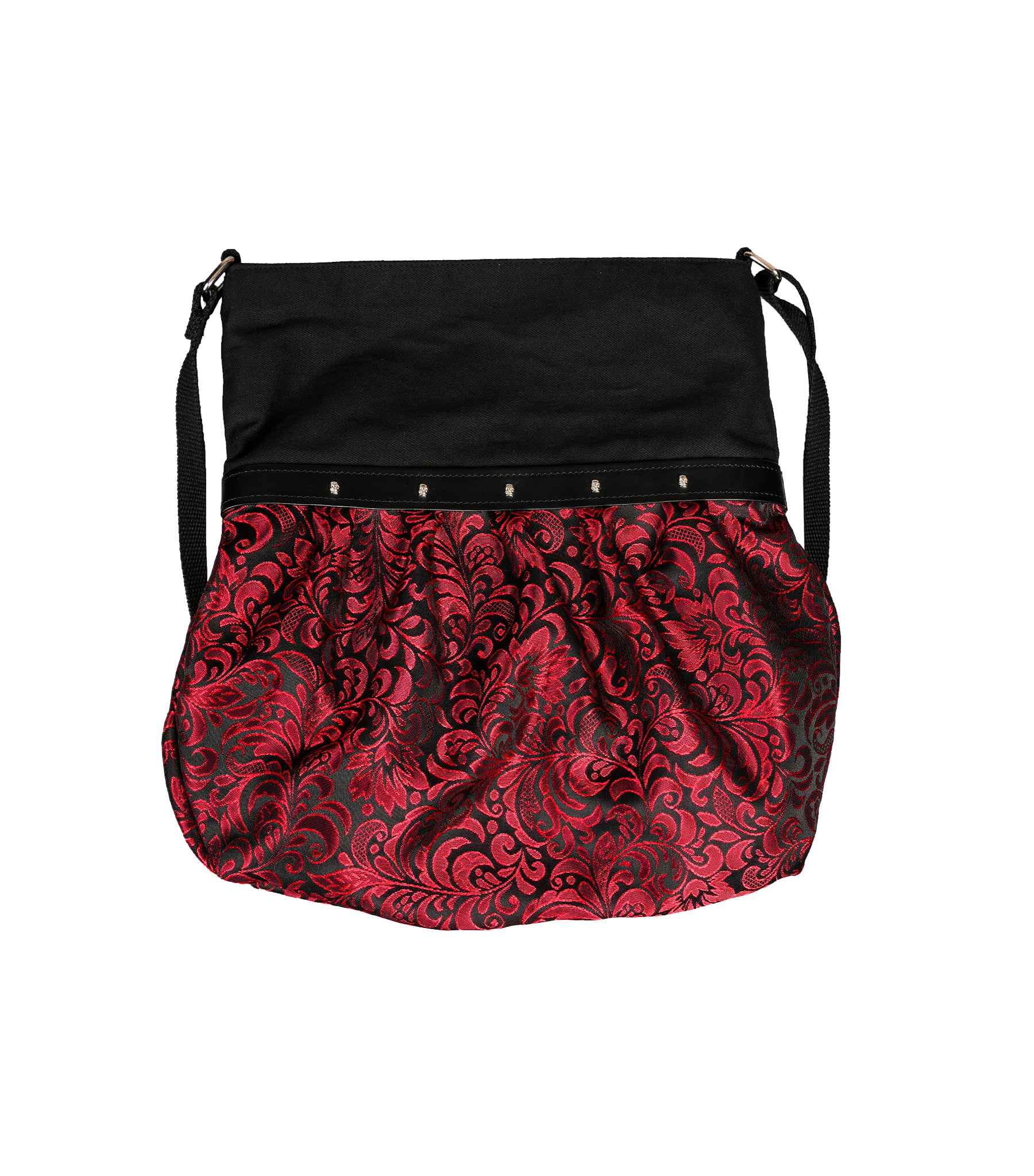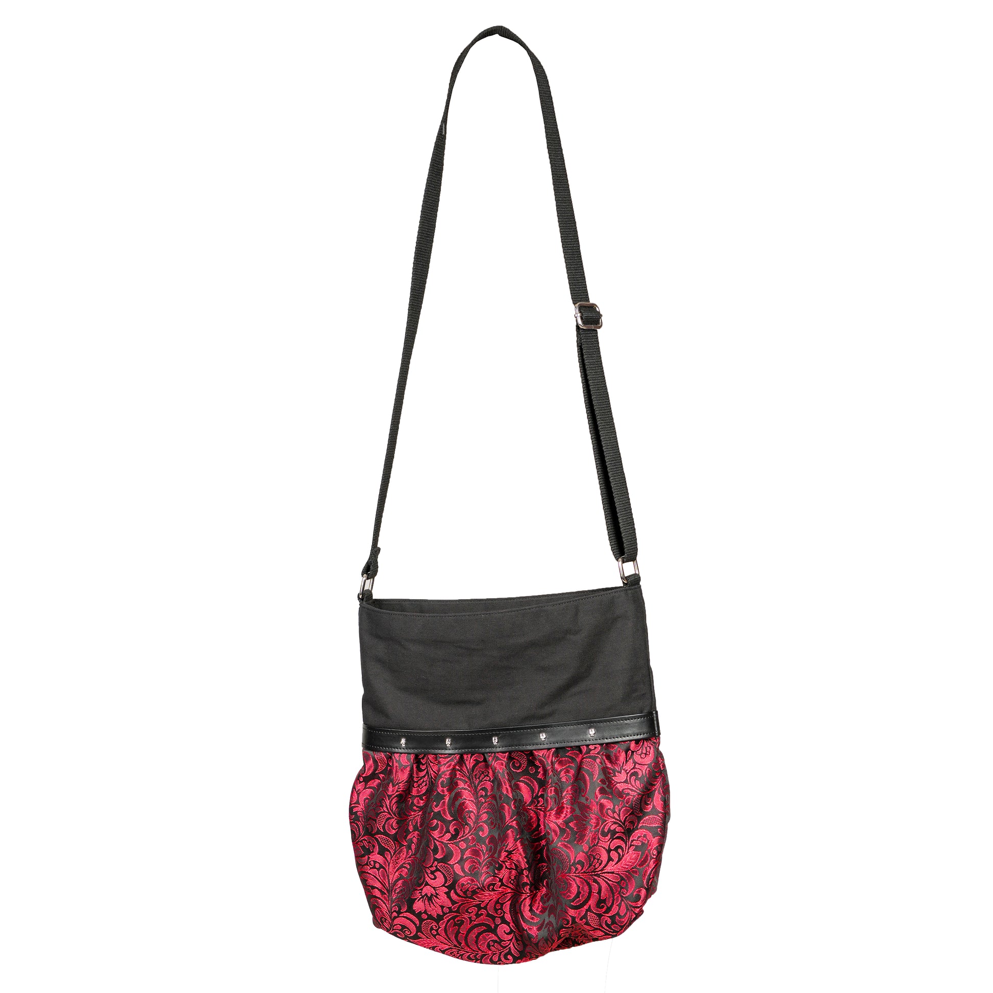 Gothic Red/Black Brocade Shoulder Bag with skull studs