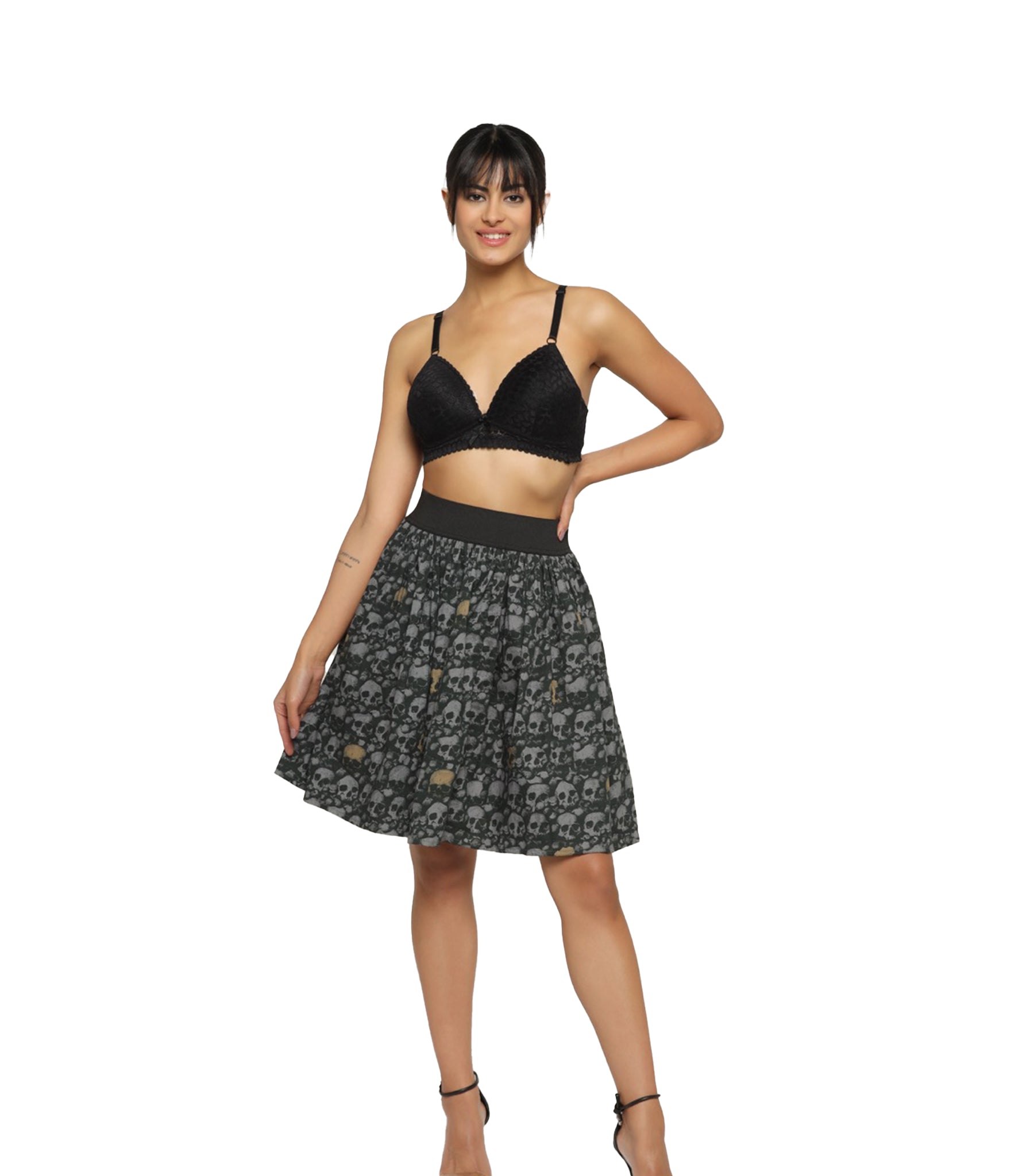 Grey Skull Printed Skirt