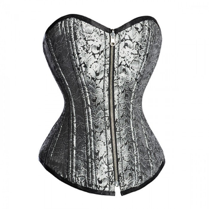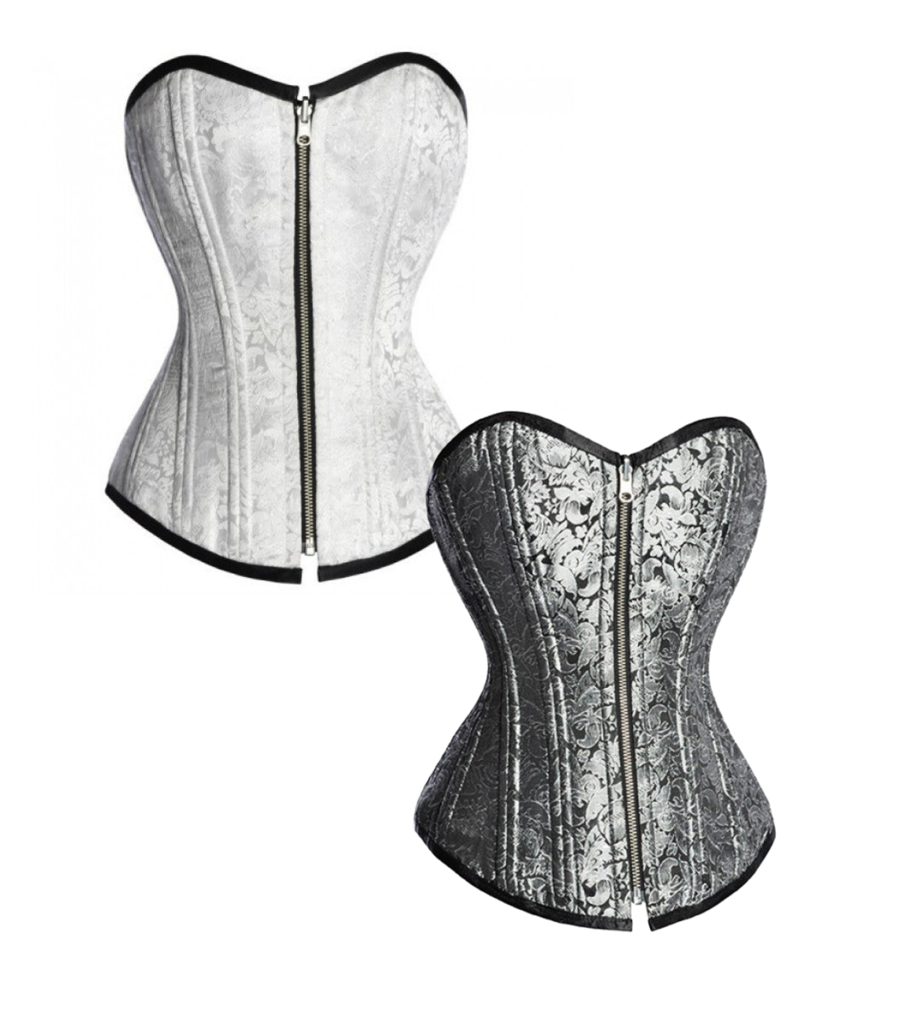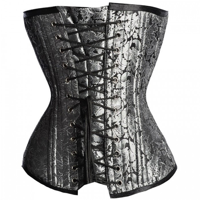 White/ silver Brocade Reversible Overbust Waist Training Corset