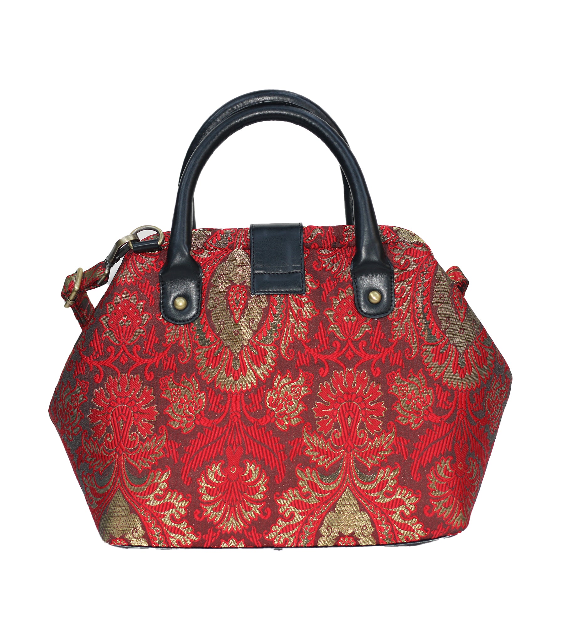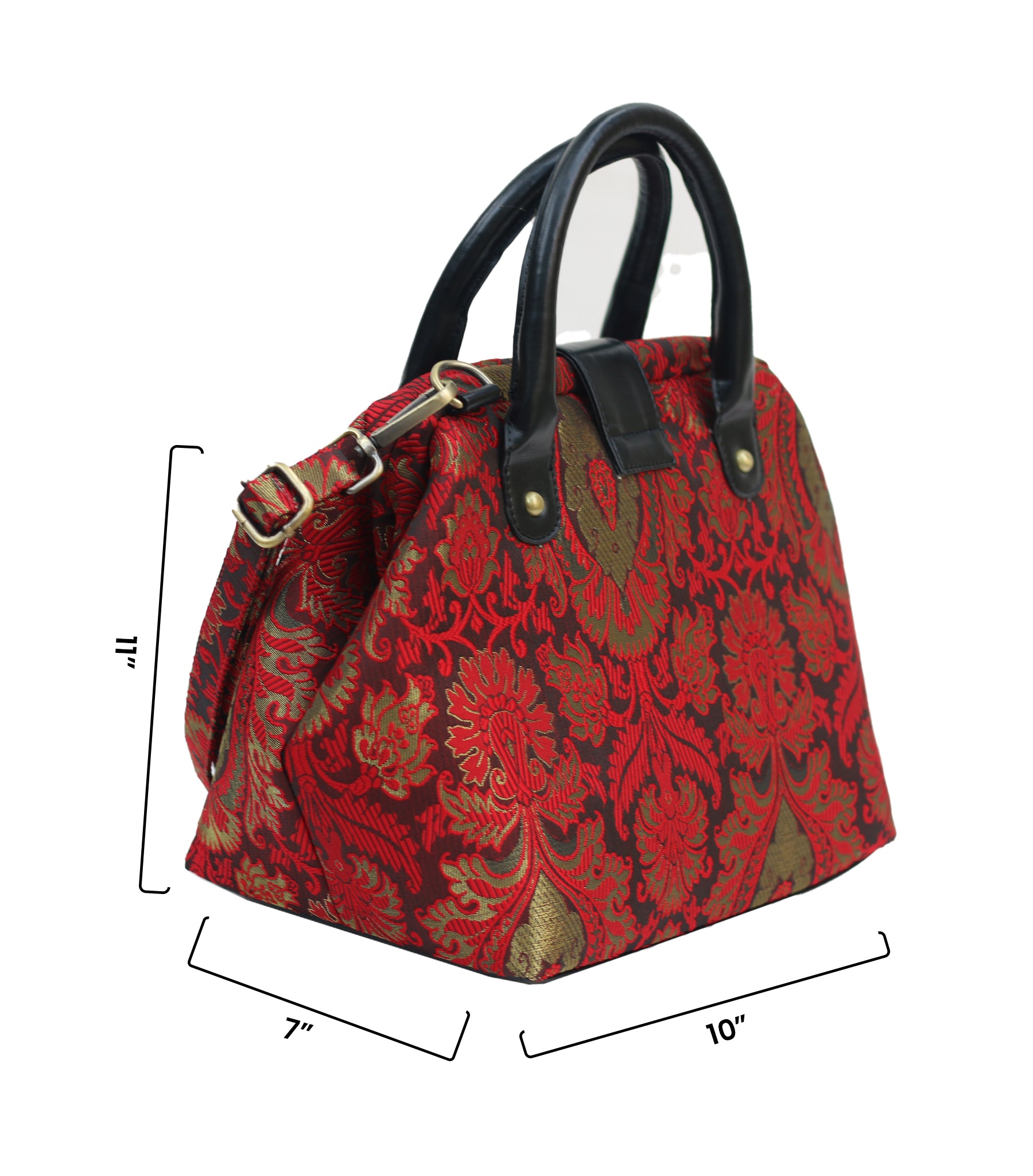 This Mary Poppin’s Jacquard Purse is perfect for everyday use. It is roomy with one pockets inside: one pocket sized 8 inches with leather strap at top of pocket It is made convenient for organizing your necessities.