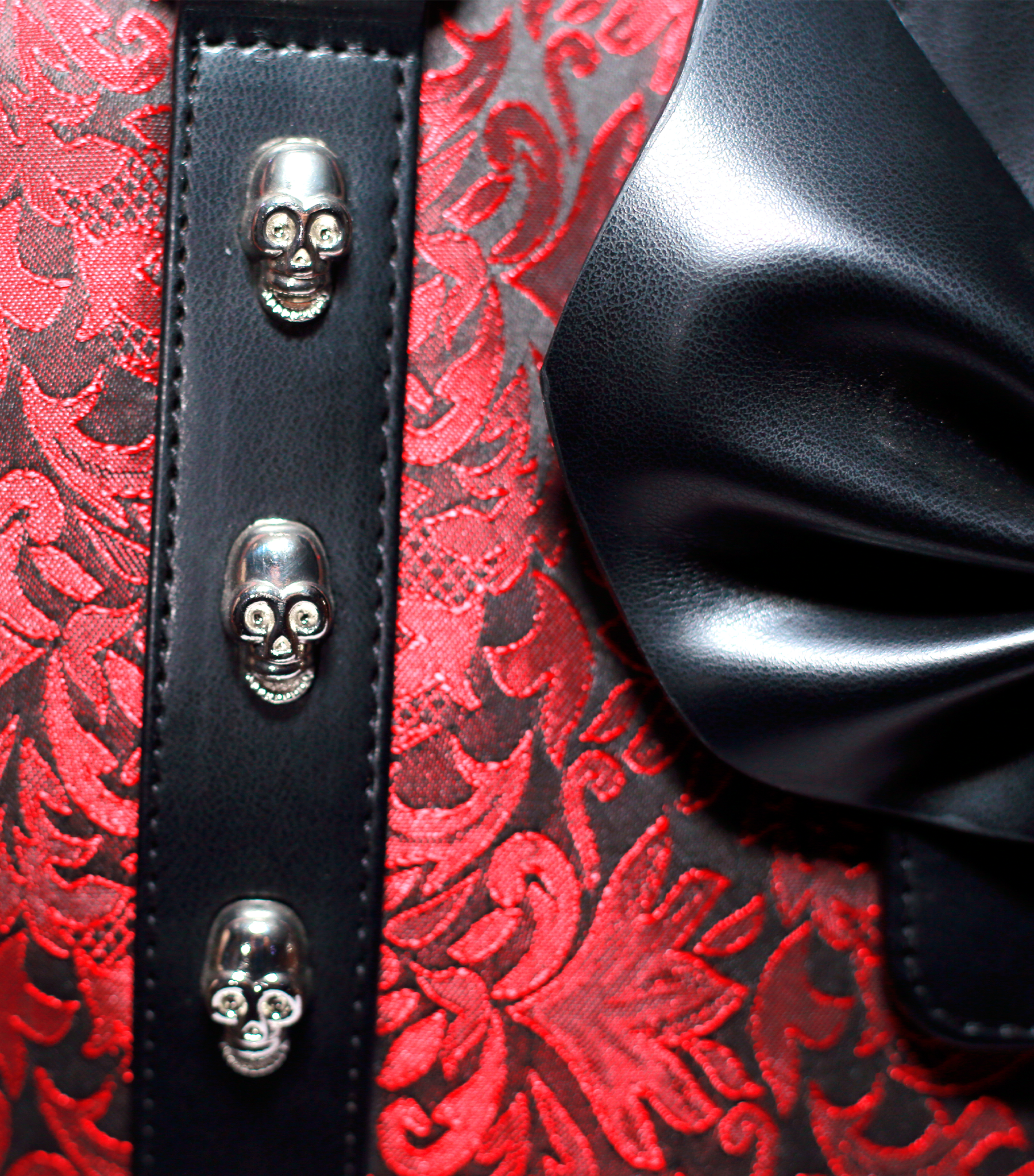 Unique Design: Crowned with a bat wing-inspired bow, skull-studded straps