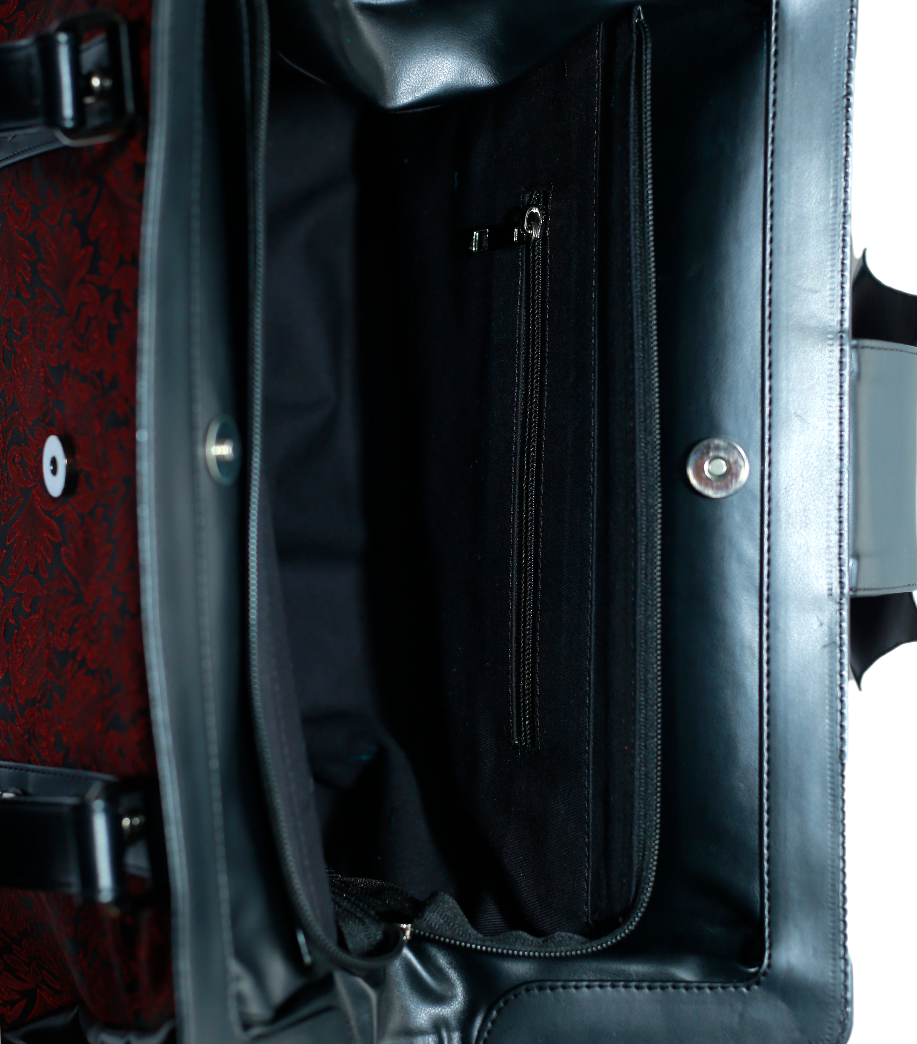 Functional Storage: he faux leather flap opens to reveal a classic lining and Multiple compartments, including back and inside zip pockets