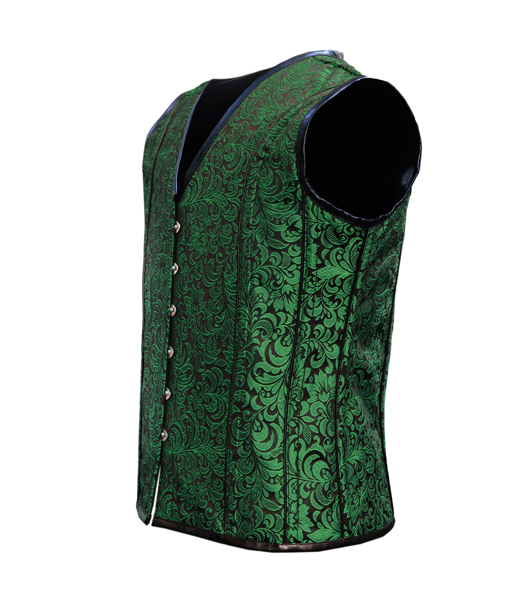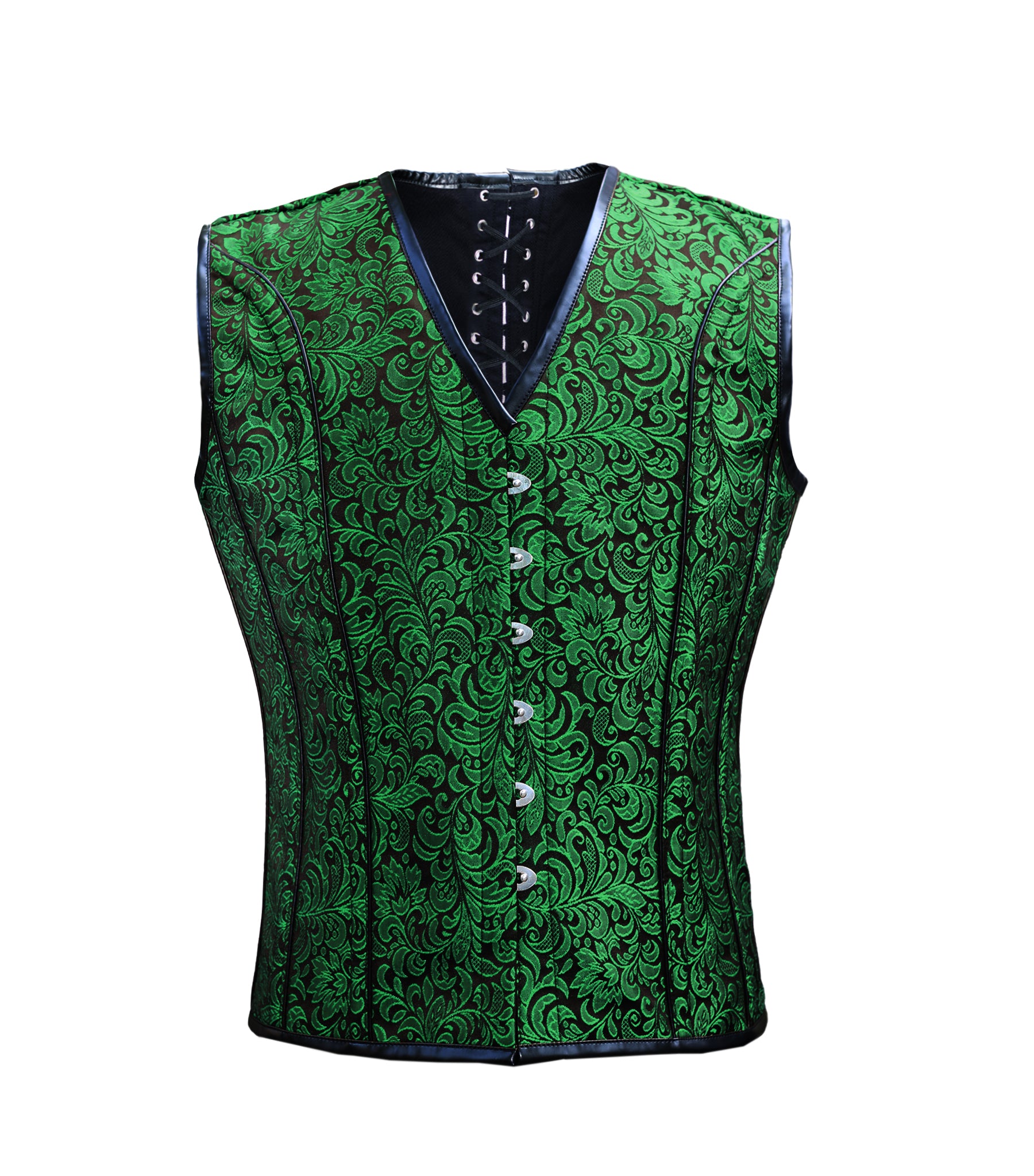 Green Vc200 Brocade Waist Reducing Overbust Men's Corset
