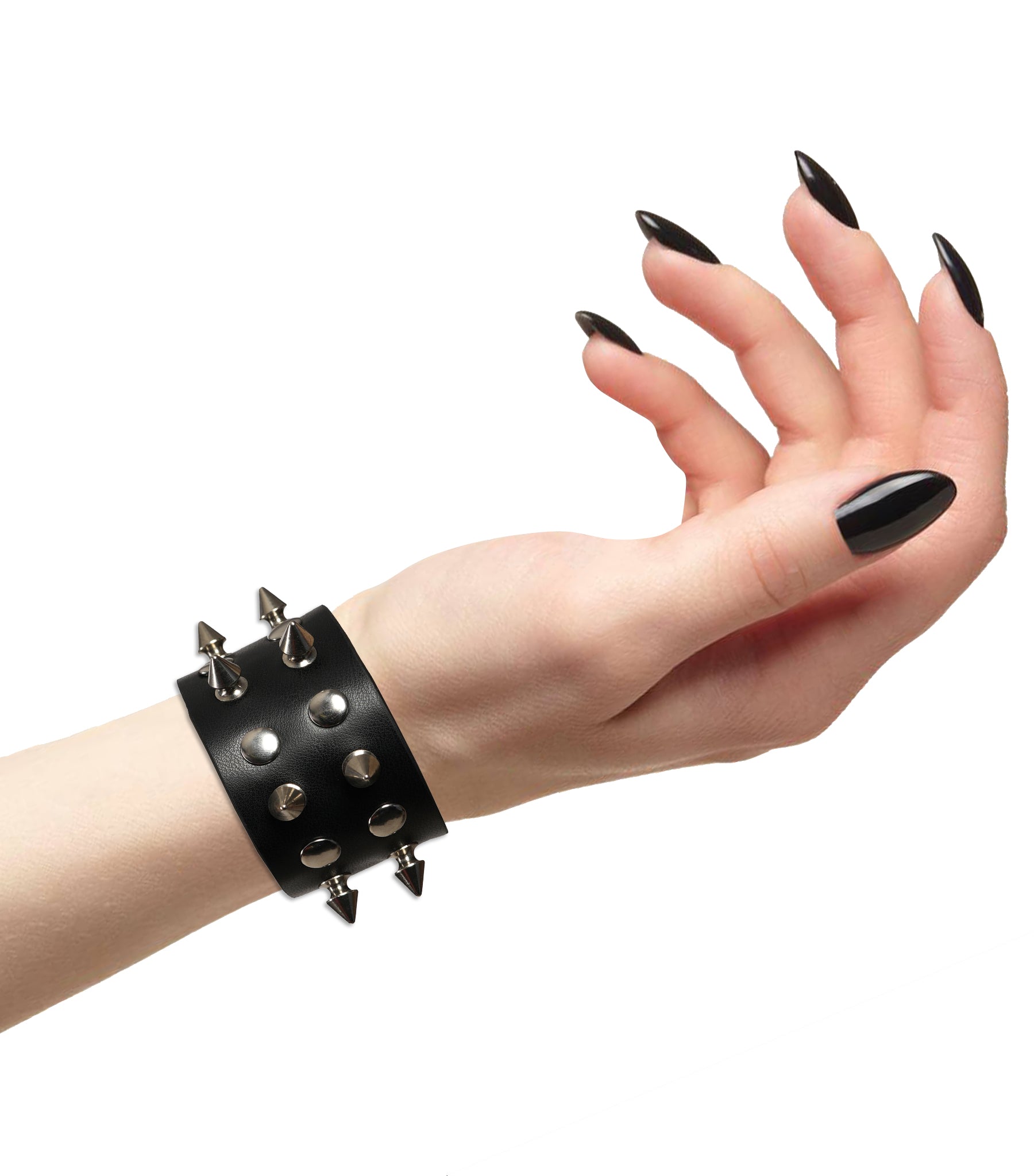 Get ready to stand out with our Black Leather Bracelet featuring Double Rows of spikes Studs. Made for folks who like to keep things cool and unique, this bracelet screams punk fashion in the best way possible. Crafted from top-notch leather, it's tough enough to handle your adventures while still looking killer.