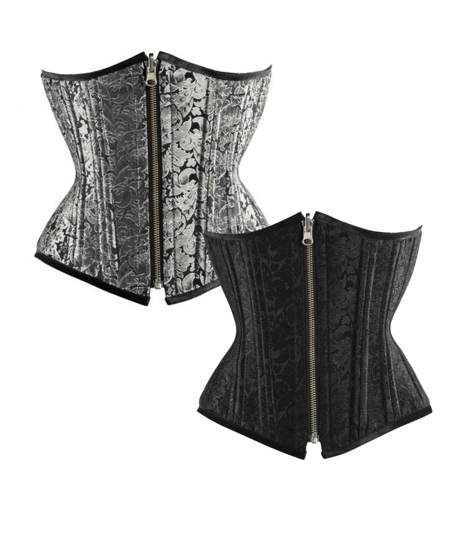 Silver/Black Brocade Authentic Steel Boned Reversible Waist Training Underbust Corset
