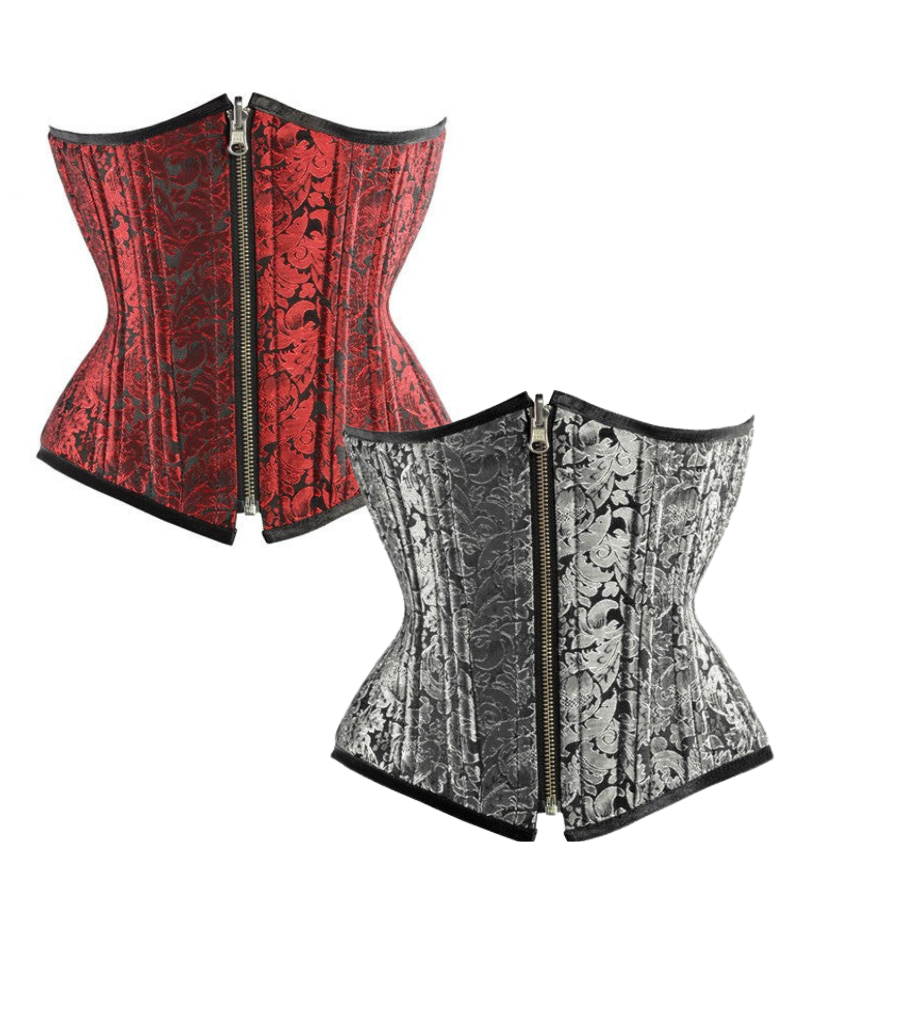 Silver/Black Brocade Authentic Steel Boned Reversible Waist Training Underbust Corset