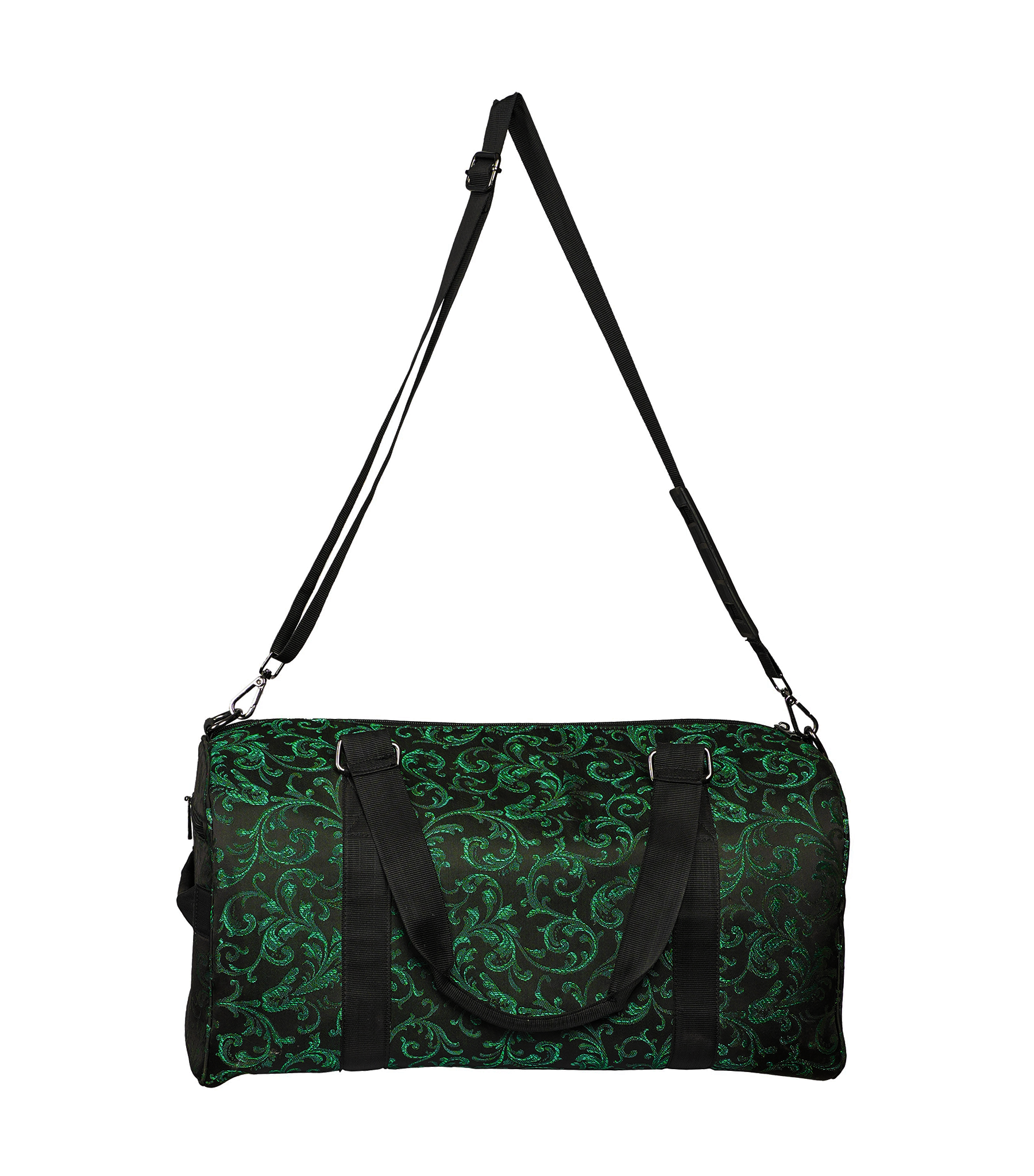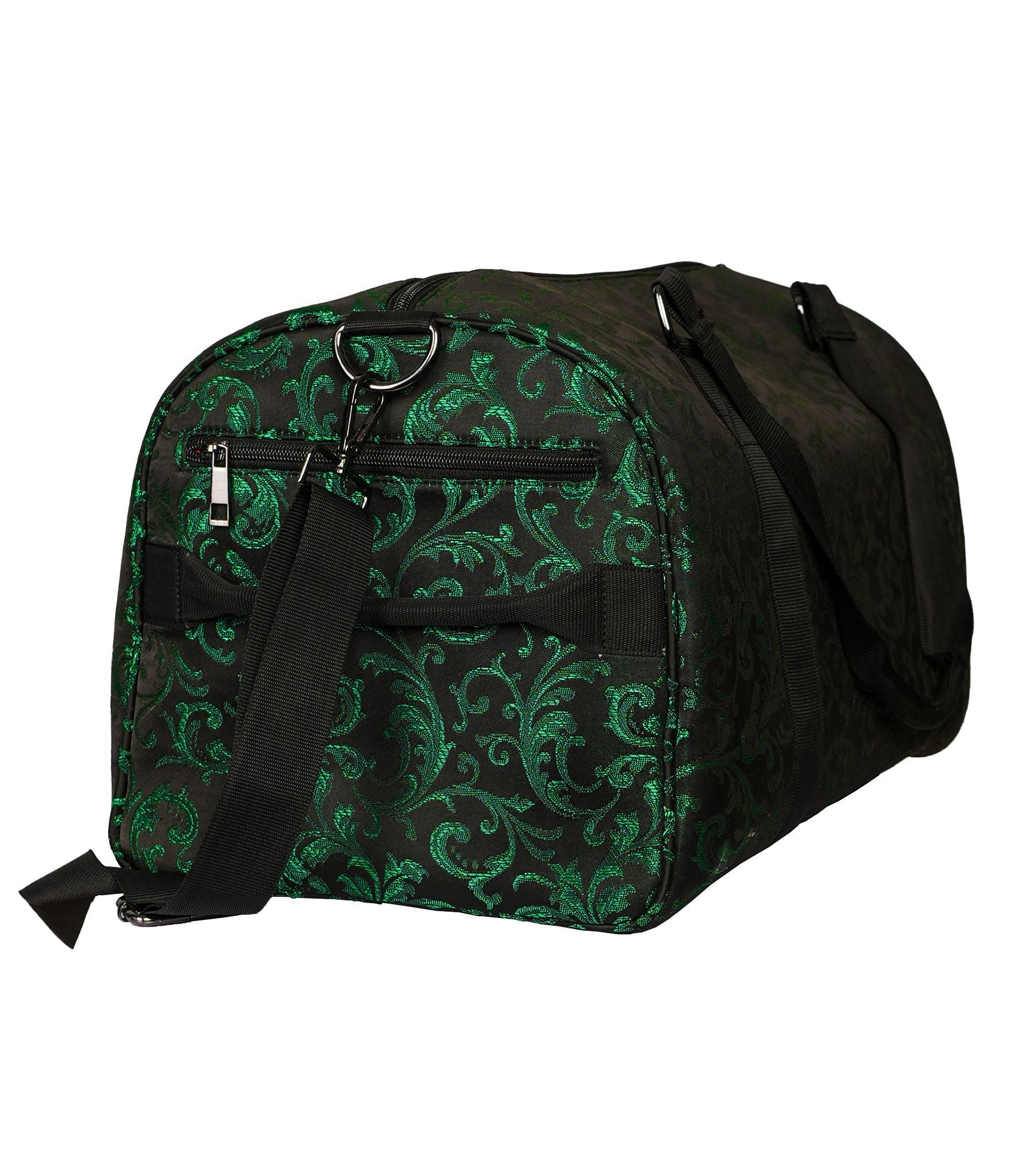 The perfect blend of style and practicality with our Green and Black Brocade Duffel Bag. Inspired by the famous Emerald City from "The Wizard of Oz," this bag features beautiful green and black fabric that stands out. It's ideal for the gym, weekend trips, or as a carry-on for your travels.