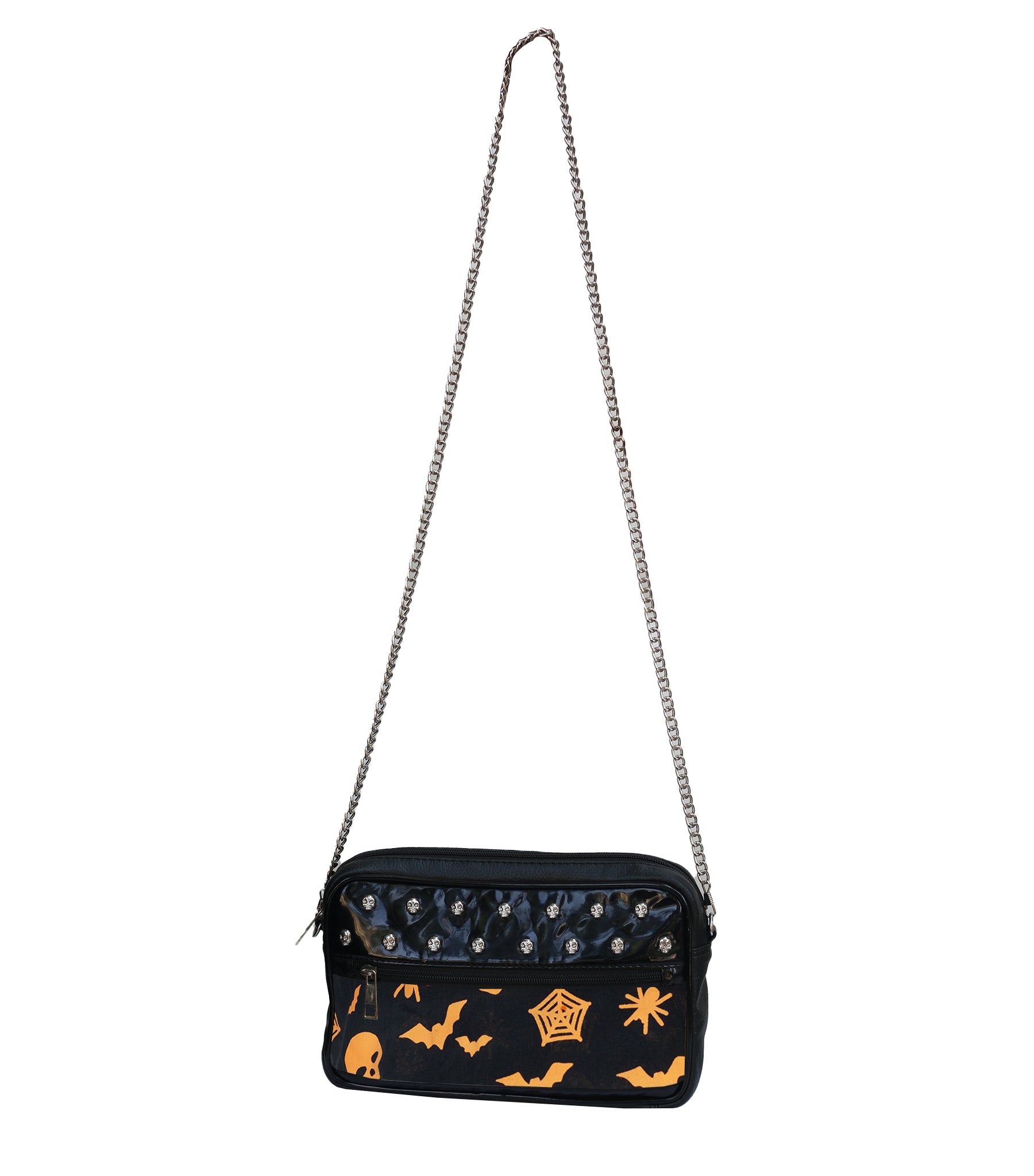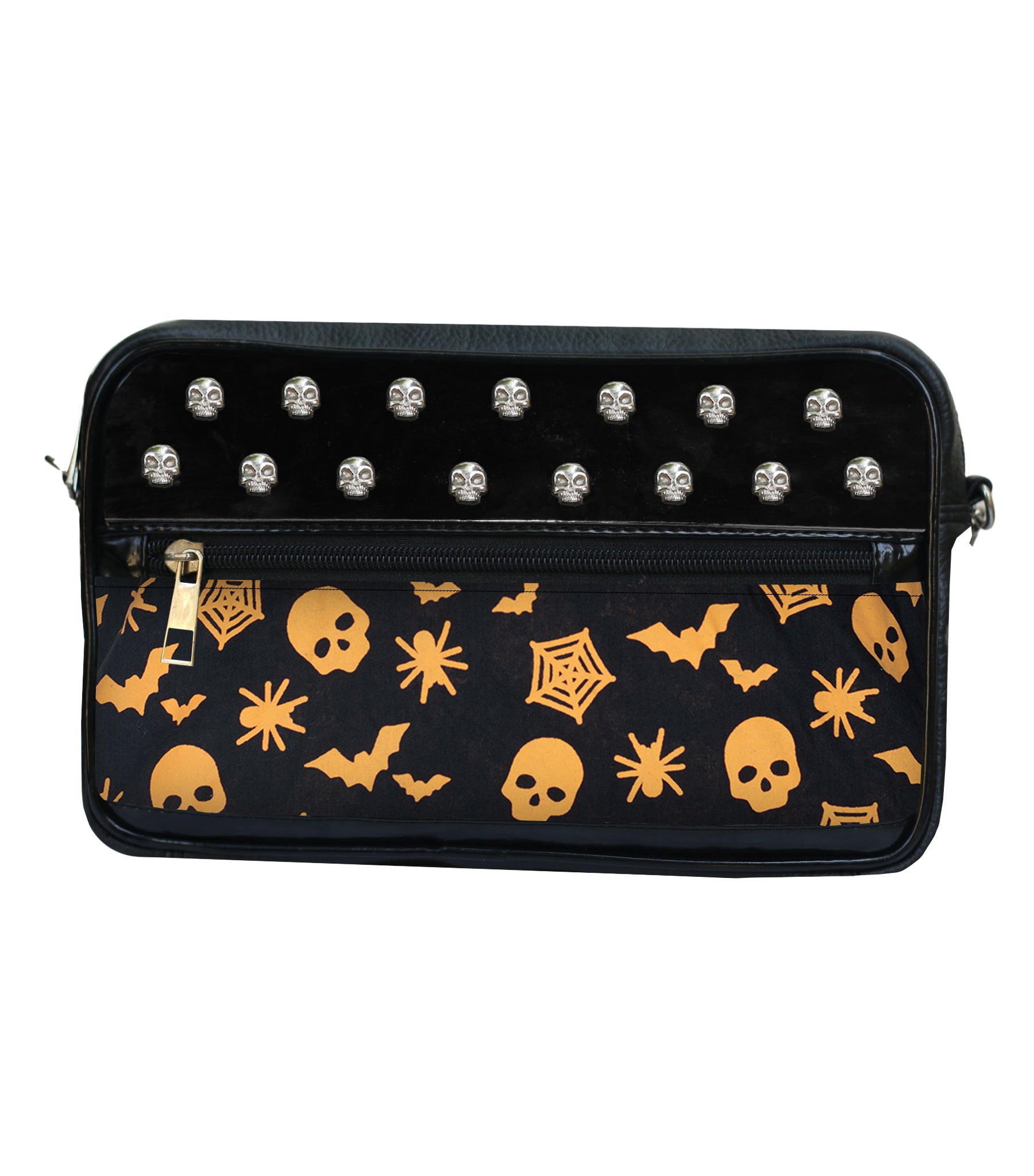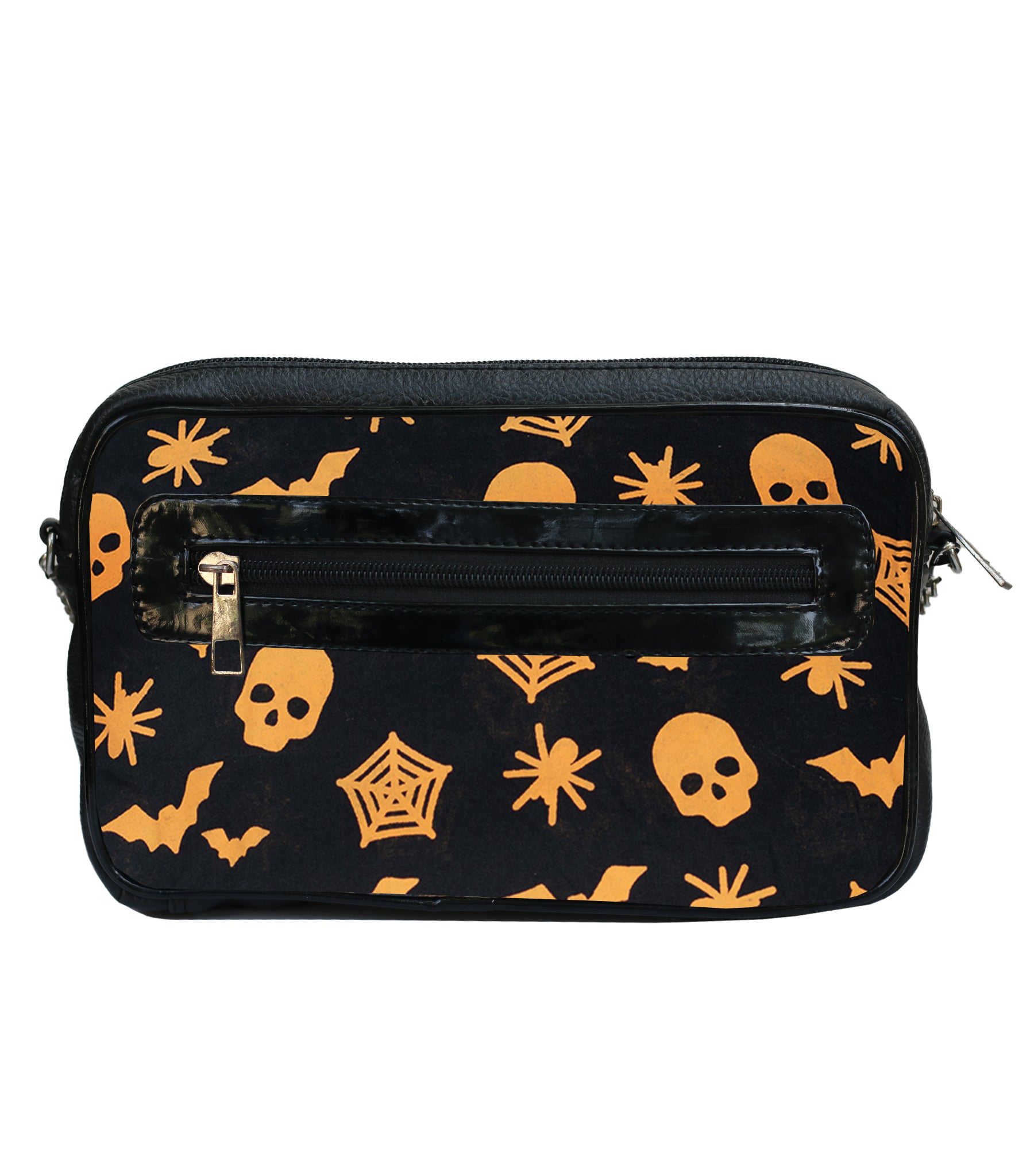 Materials: Soft Faux Leather, Bat Skull Print, Satin Lining, YKK (best in class zips and pullers, Silver Hardware.