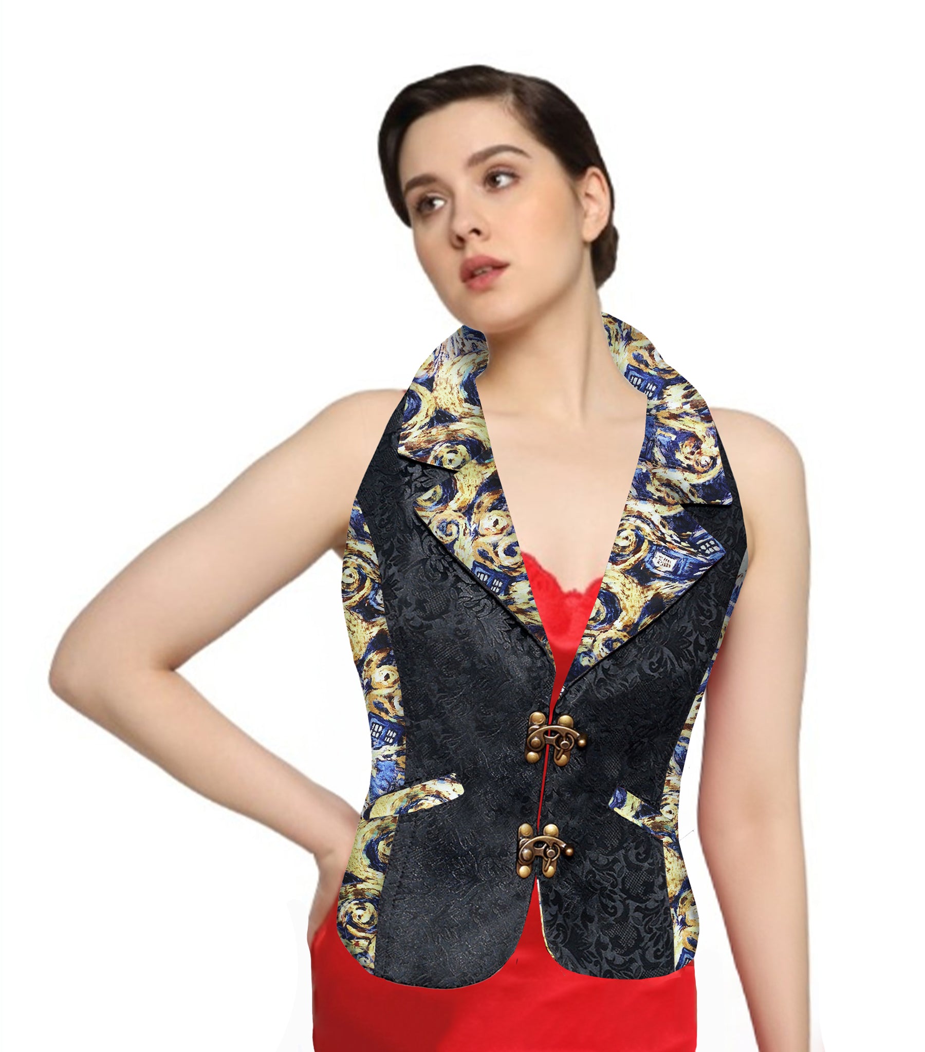 Design & Feature : Short Length Waistcoat With Notch Collar, Metallinc Clasp Opening & Adjustable At Back With Metal Buckles In Antique.