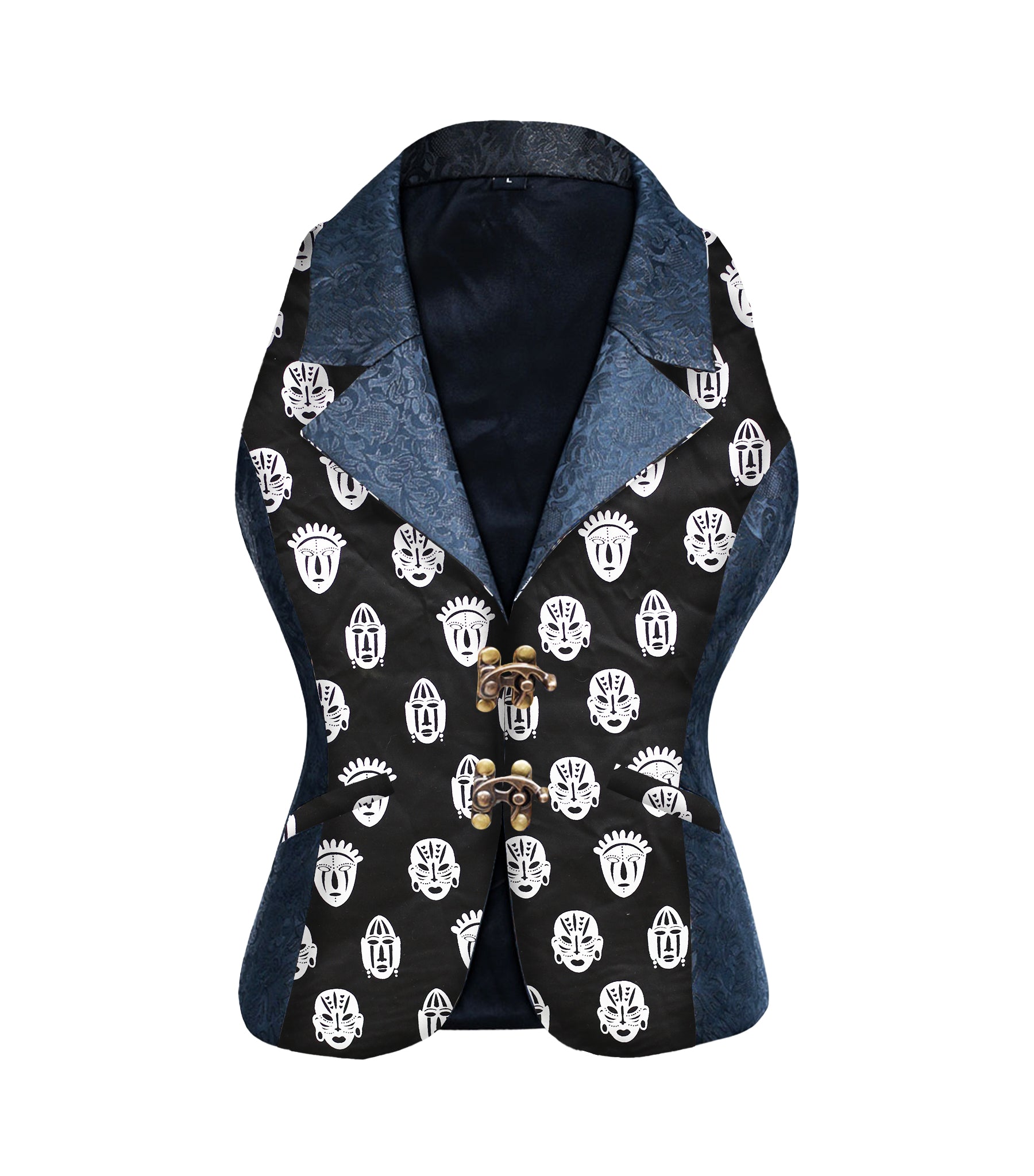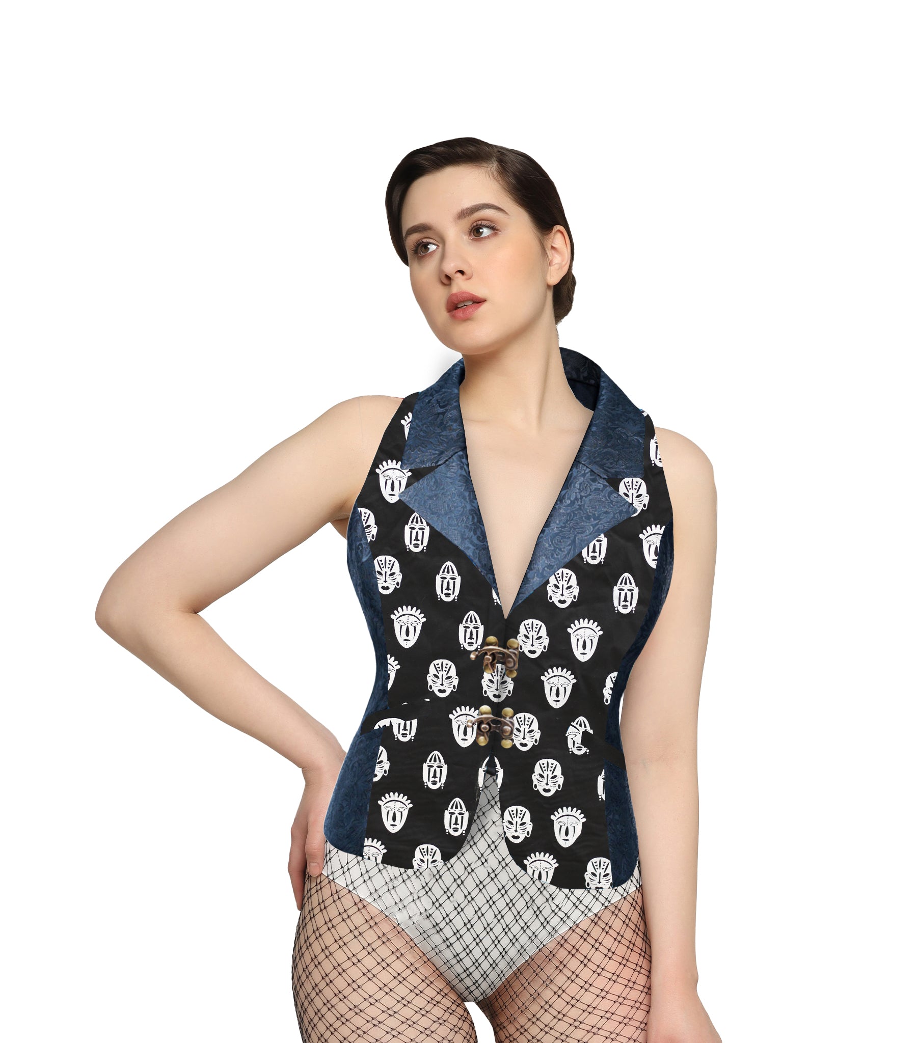 Tribal Print Black brocade Ladies Waistcoat