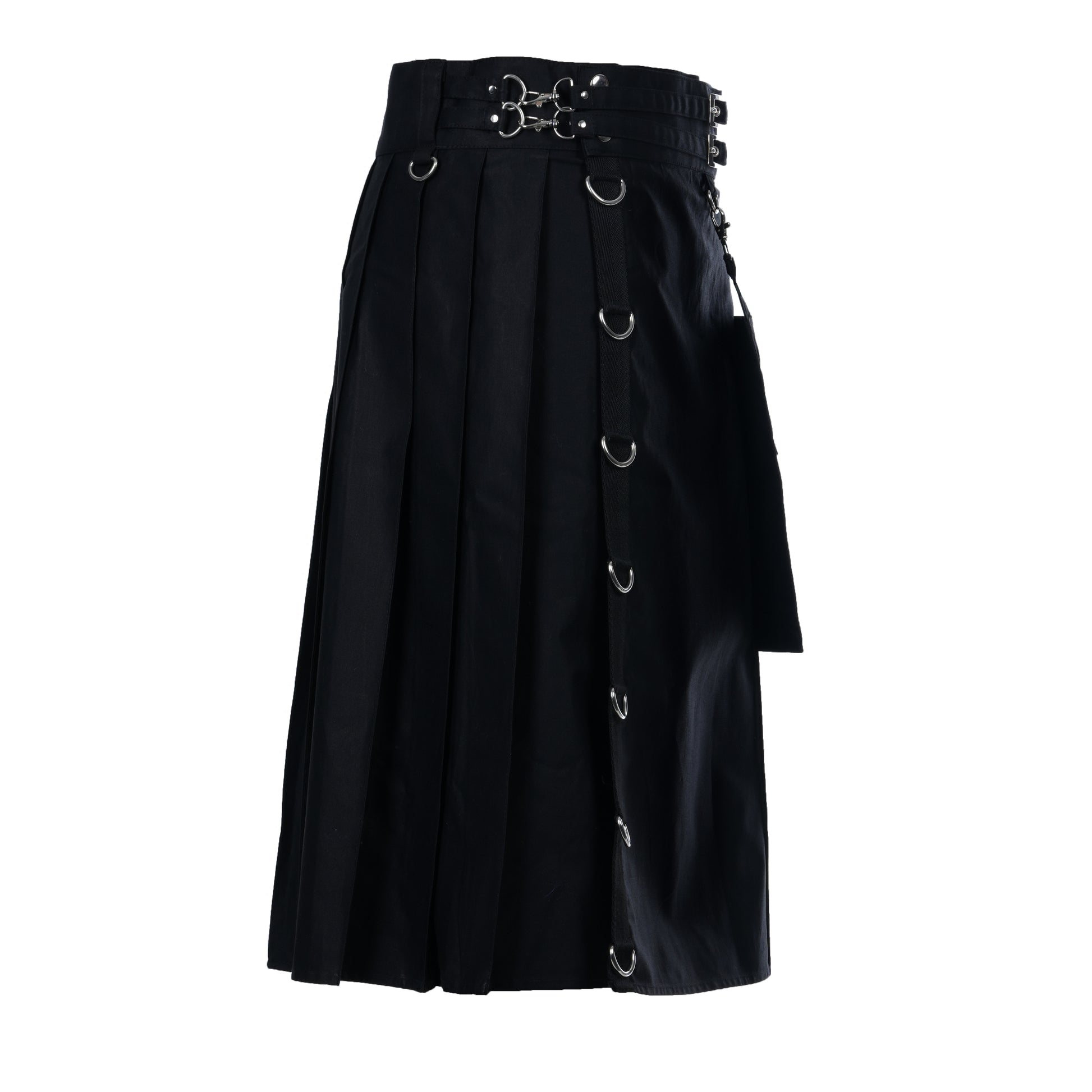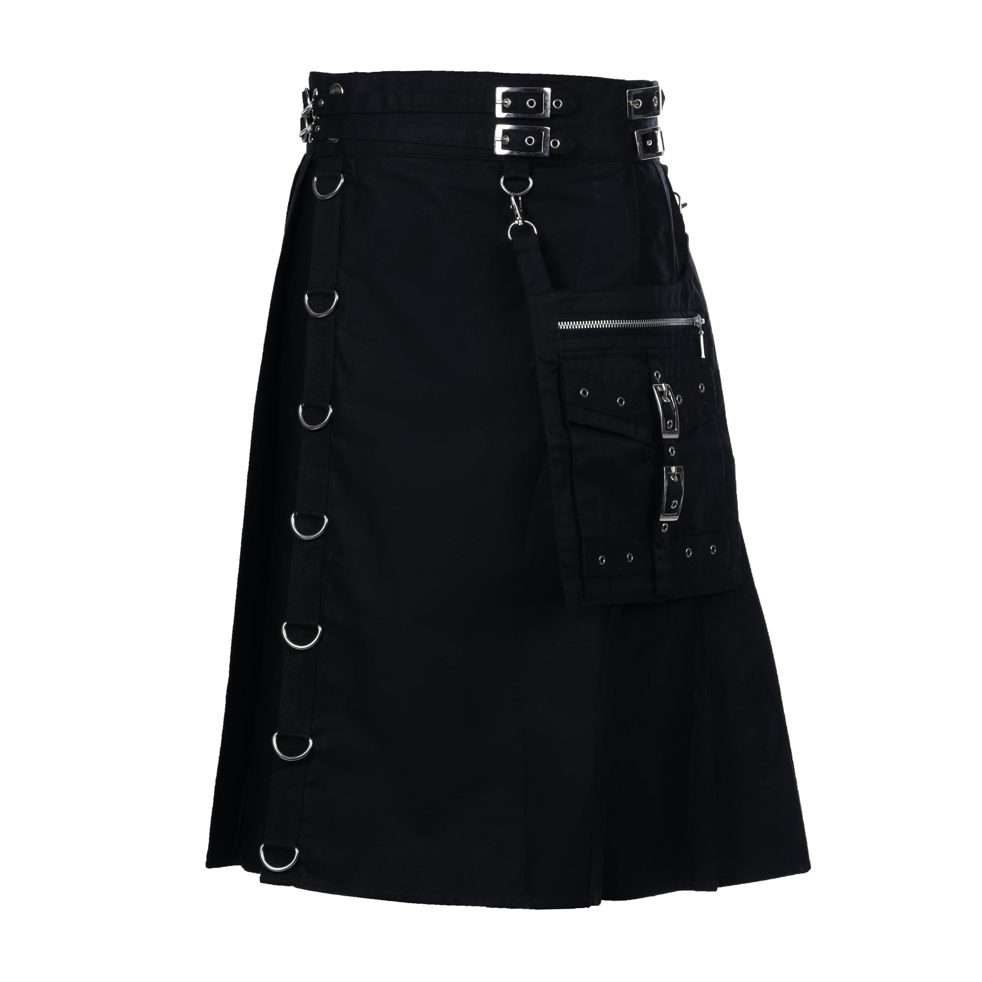 Discover unparalleled style with our Gothic Kilt featuring a unique blend of tradition and contemporary design. & nbsp ;This kilt is crafted for comfort and durability, boasting a button closure for a secure fit. Featuring a secure Snap and Buckle buttons closure and stylish side D-ring accents,comes with detachable pockets detailed with eyelet and buckle.
