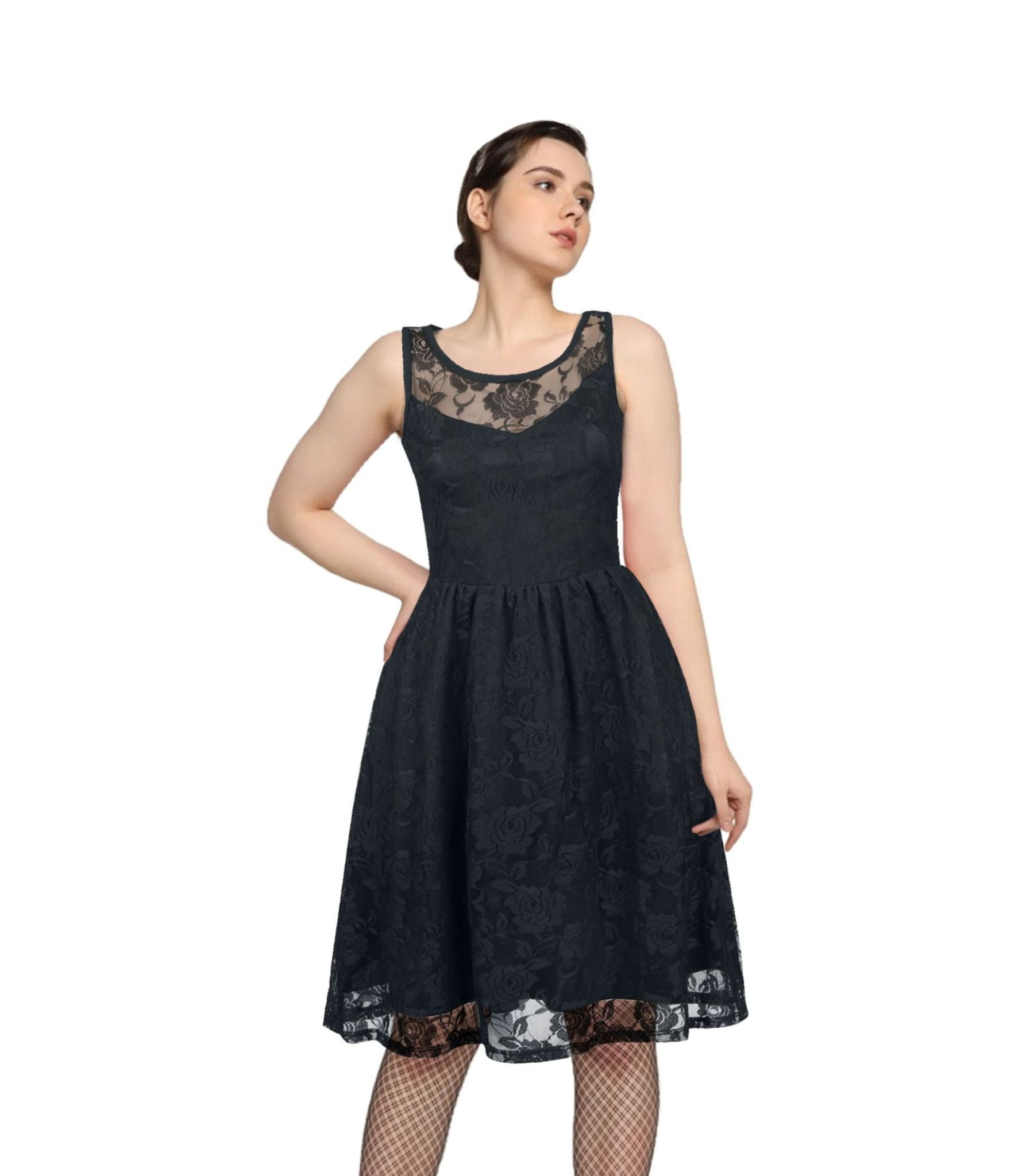 Women's Black Flair Flower Mesh Dress - Wholesale