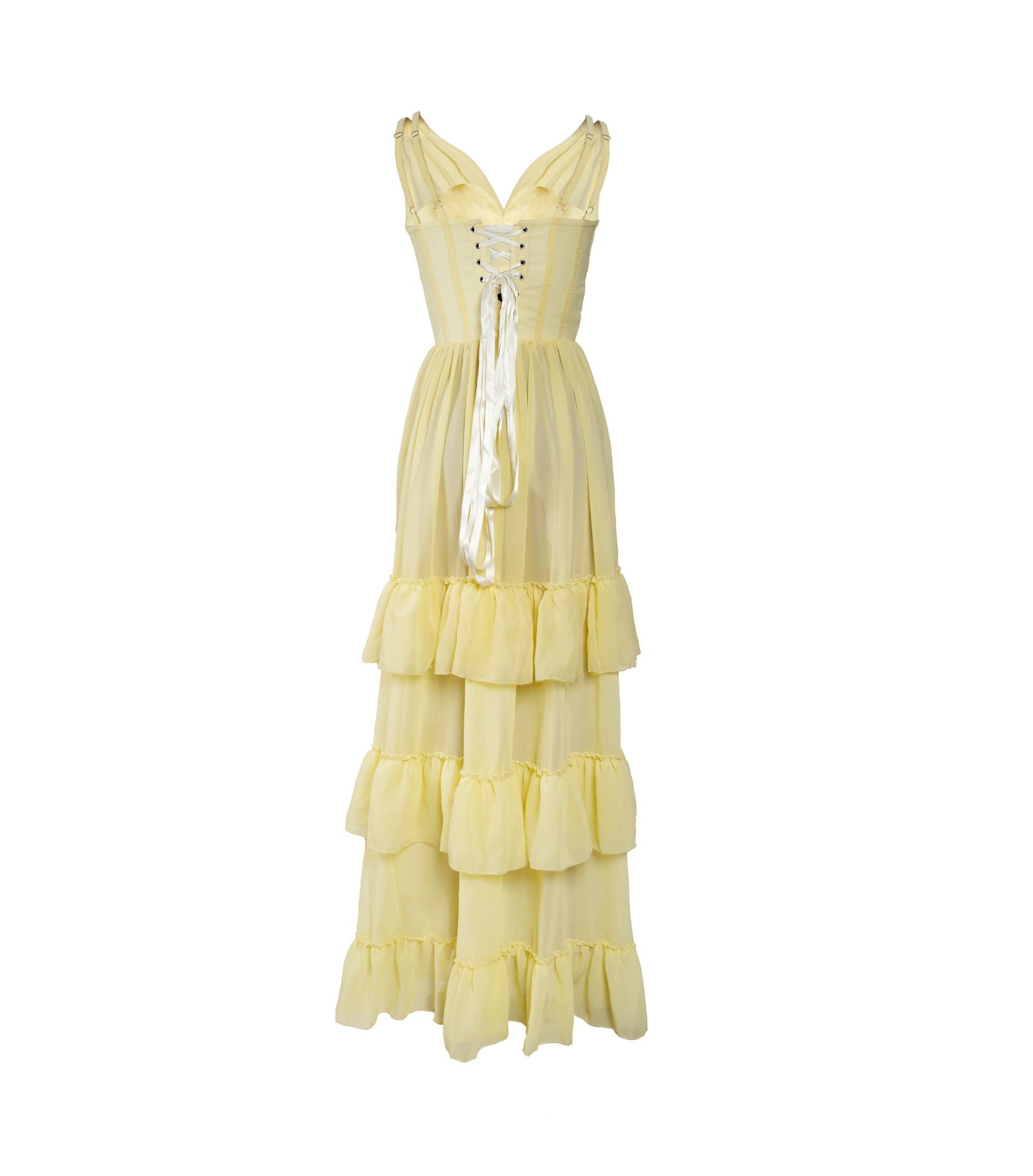Women's Yellow Maxi Dress with Corset-Style Lace-Up Back